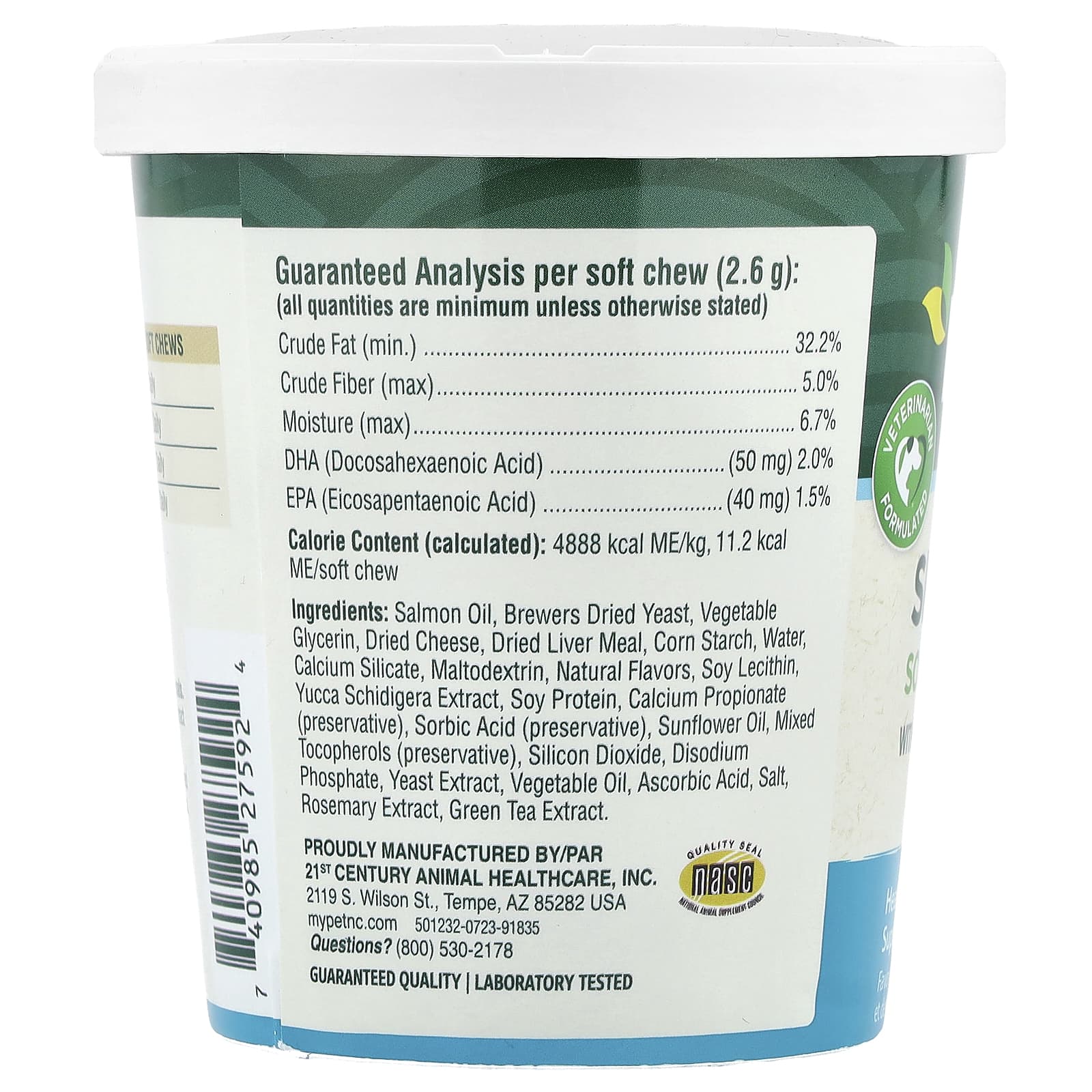 Жир лосося, сухие пивные дрожжи, растительный глицерин, сушеный сыр, сушеная печеночная мука, кукурузный крахмал, вода, силикат кальция, мальтодекстрин, натуральные ароматизаторы, соевый лецитин, экстракт юкки Шидигера (Yucca schidigera), соевый белок, пропионат кальция (консервант), сорбиновая кислота (консервант), подсолнечное масло, смешанные токоферолы (консервант), диоксид кремния, динатрия фосфат, экстракт дрожжей, растительное масло, аскорбиновая кислота, соль, экстракт розмарина