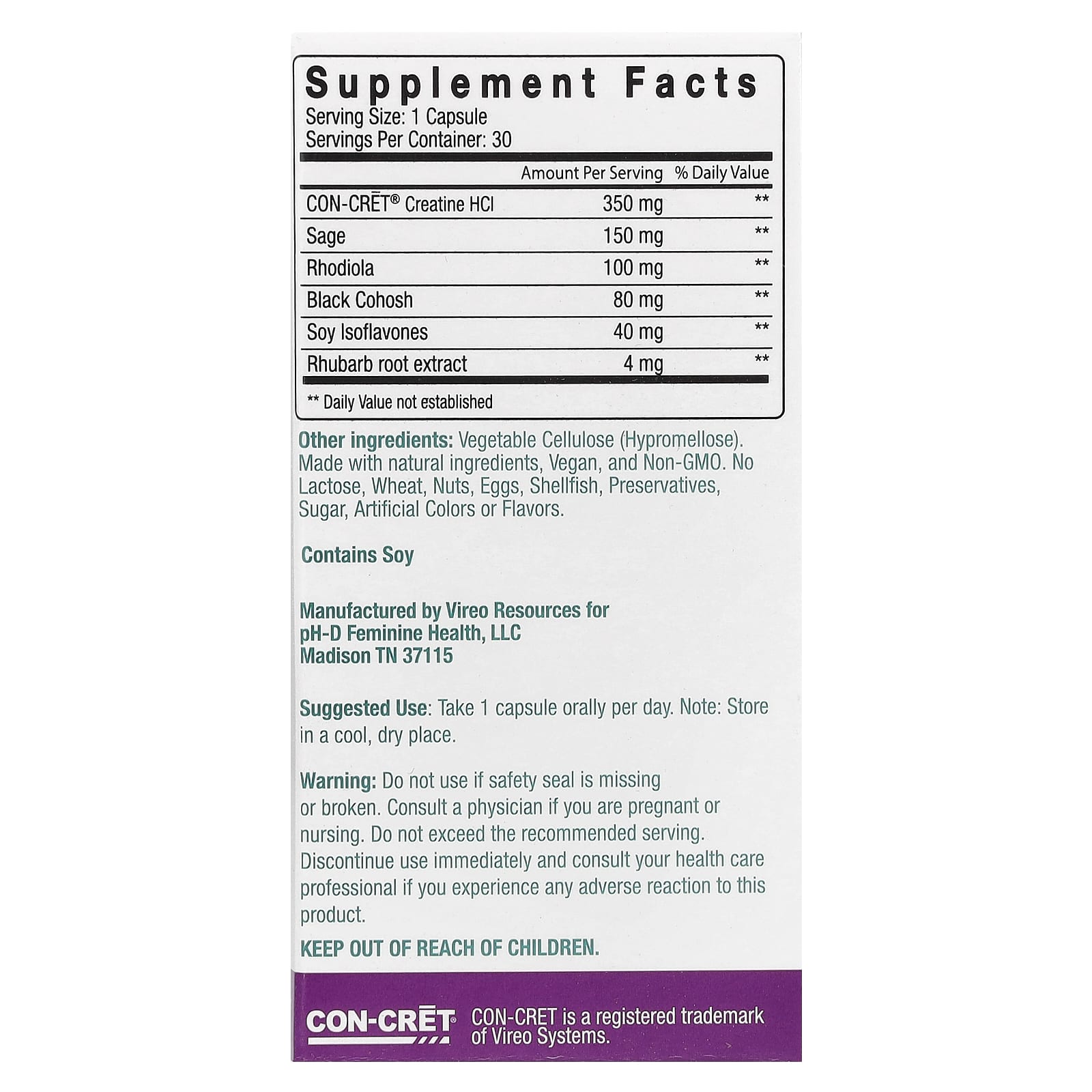 Капсулы для комплексной поддержки женского здоровья при менопаузе с уровнем pH-D способствуют уменьшению приливов, раздражительности, перепадов настроения, ночной потливости и затуманенного сознания. В отличие от любых других добавок при менопаузе, представленных на рынке, эти капсулы содержат CON-CRET®, который помогает подавать клеточную энергию для поддержки оптимального здоровья мозга.