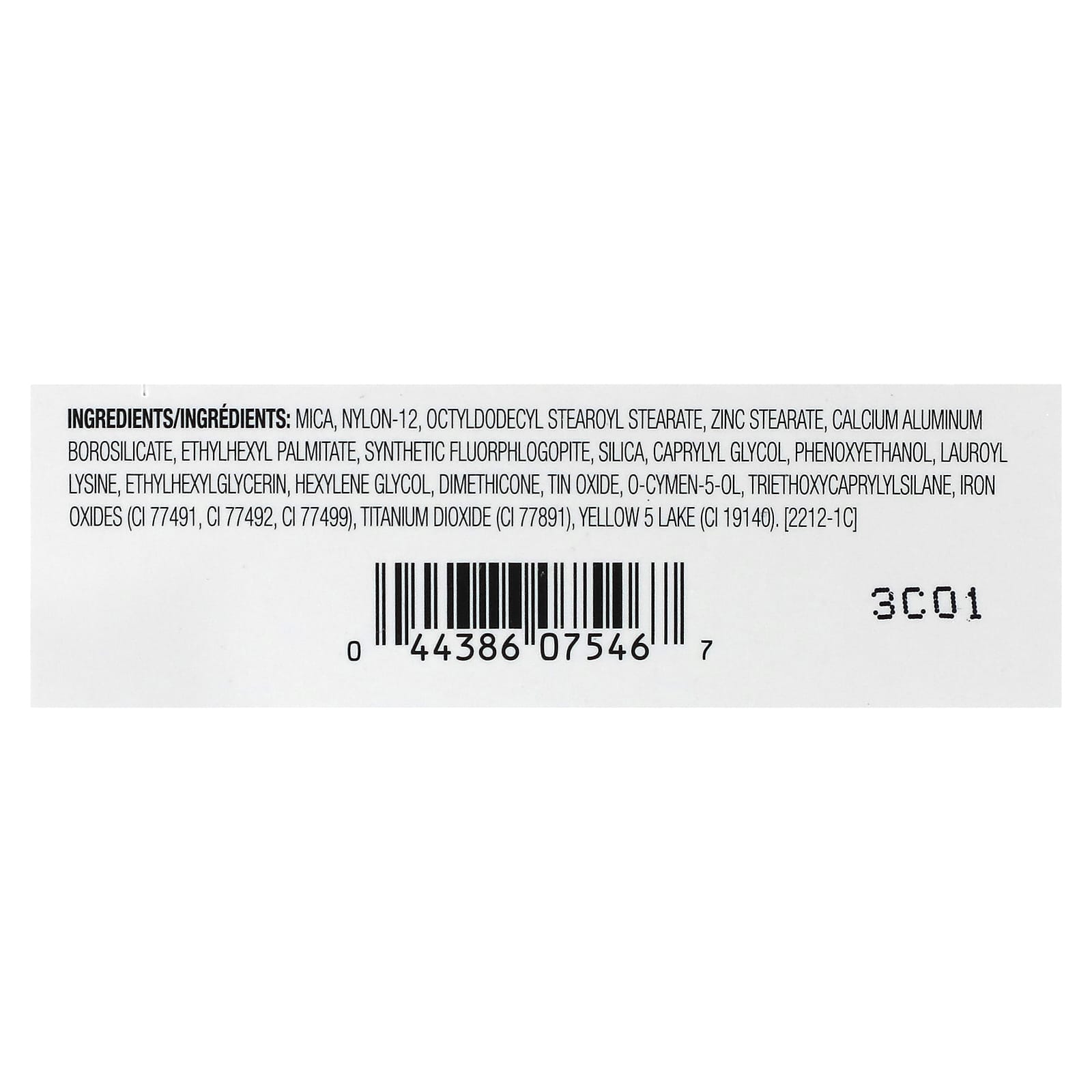 слюда, нейлон-12, октилдодецил стеароил стеарат, стеарат цинка, кальций алюминий боросиликат, этилгексил пальмитат, синтетический фторфлогопит, диоксид кремния, каприлилгликоль, феноксиэтанол, лаурил лизин, этилгексилглицерин, гексиленгликоль, диметикон, оксид олова, о-цимен-5-ол, триэтоксикаприлилсилан, оксиды железа (CI 77491, CI 77492, CI 77499), диоксид титана (CI 77891), краситель желтый 5 лак (CI 19140)