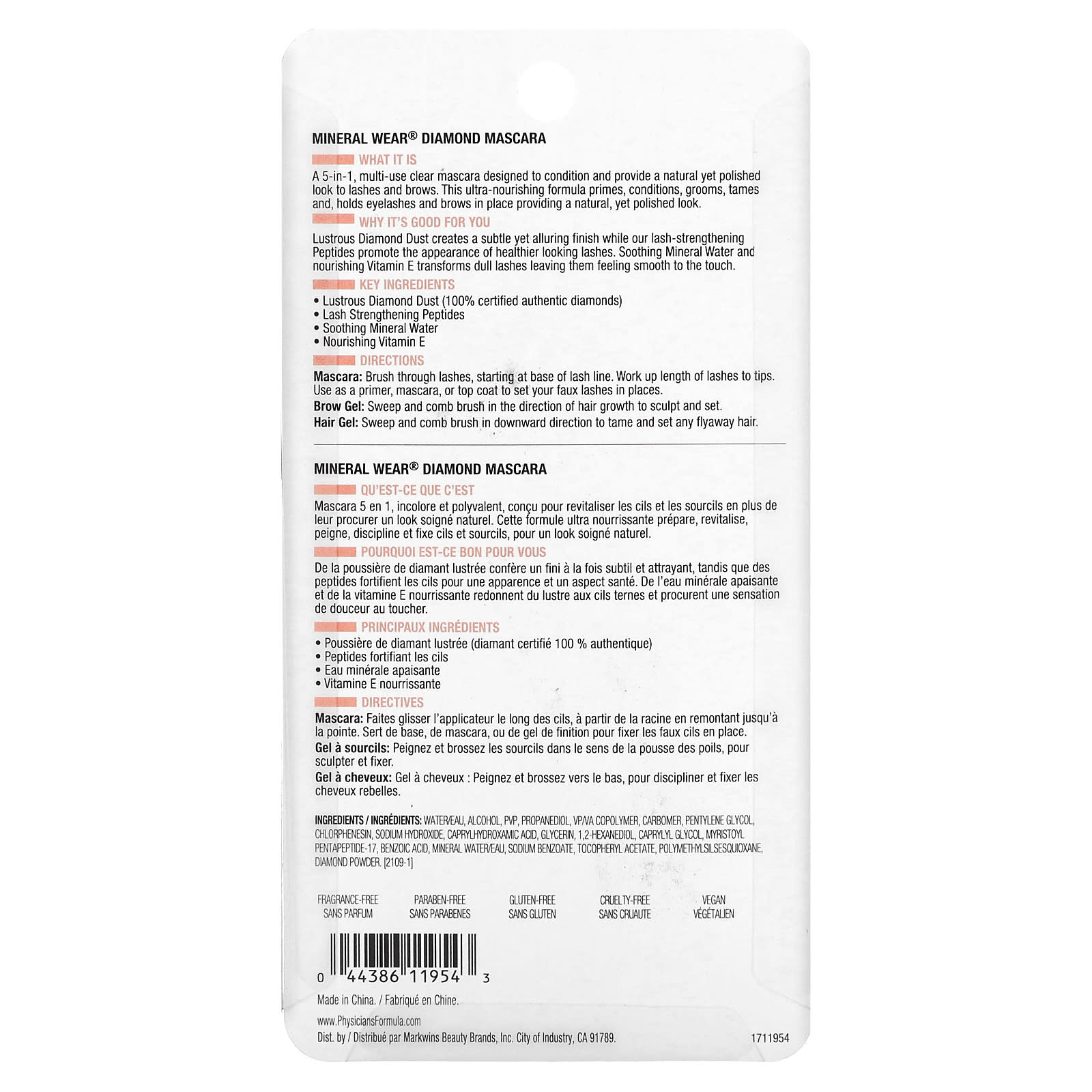 Physicians Formula, Mineral Wear, Diamond Mascara, прозрачная тушь 5-в-1, 1711954 Clear Diamond, 9,5 мл (0,32 жидк. унц.)