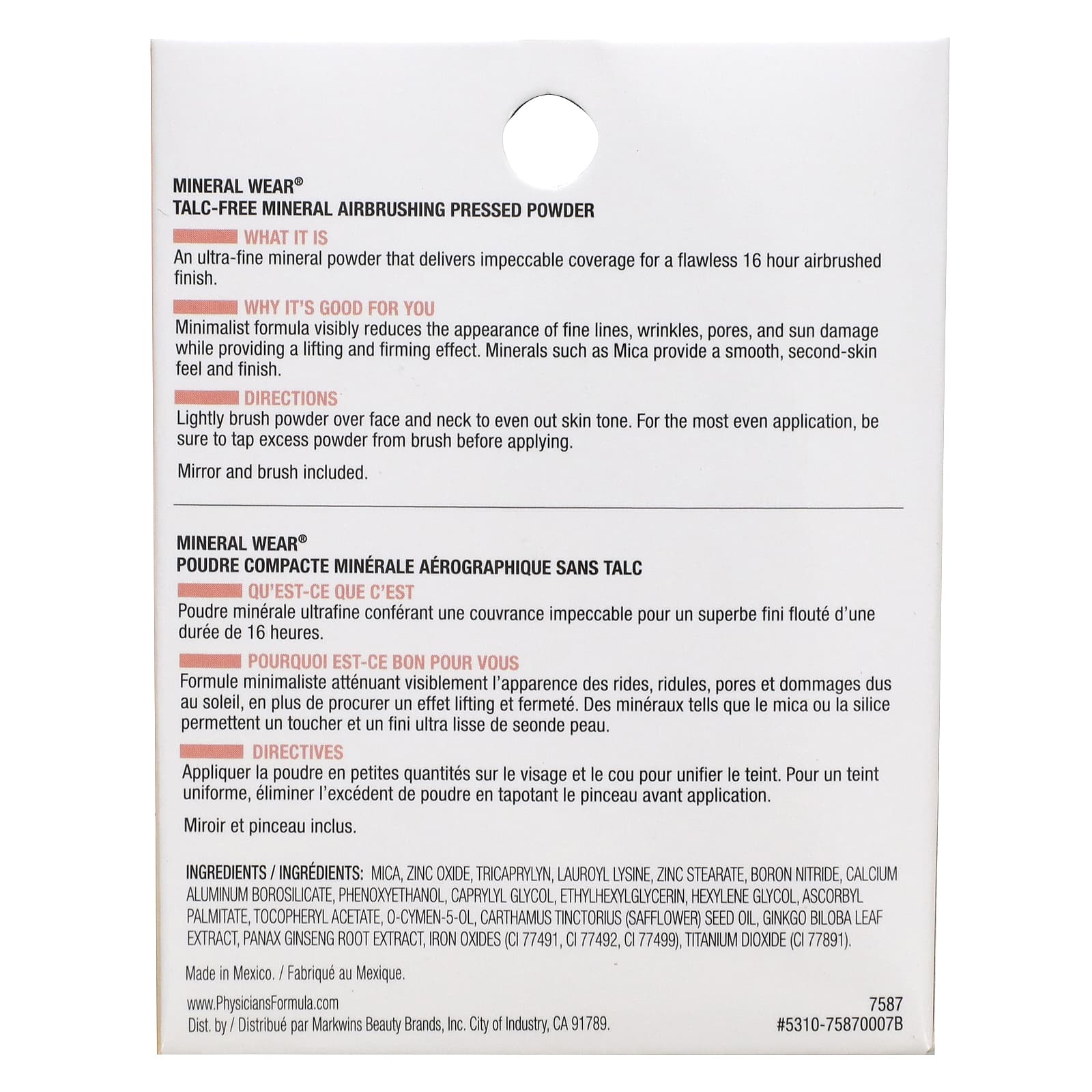 Physicians Formula, Mineral Wear, минеральная прессованная пудра без талька, 7587 кремообразный натуральный, 7,5 г (0,26 унции)