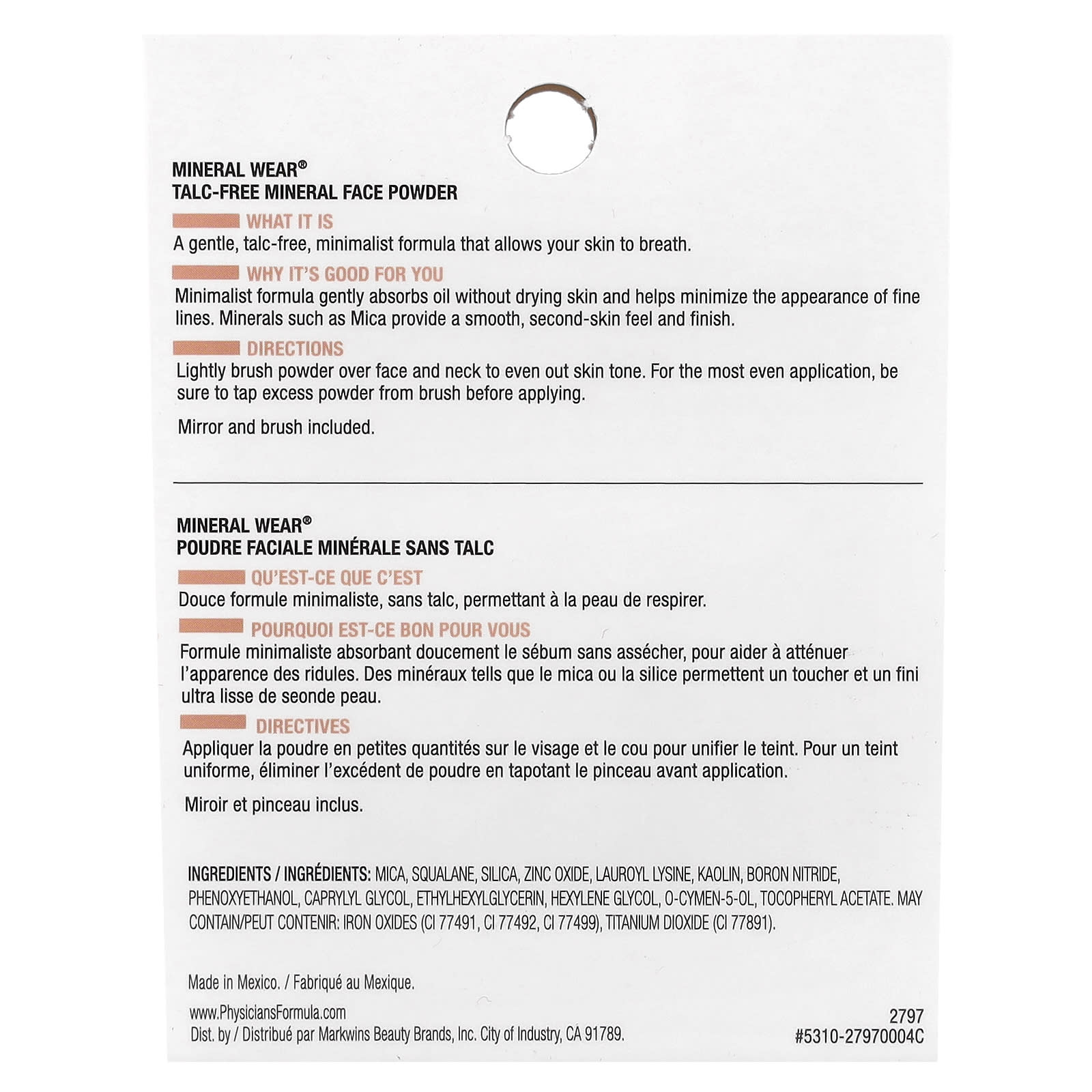 Physicians Formula, Mineral Wear, минеральная пудра для лица без талька, SPF 16, бежевый оттенок 2797, 9 г (0,3 унции)