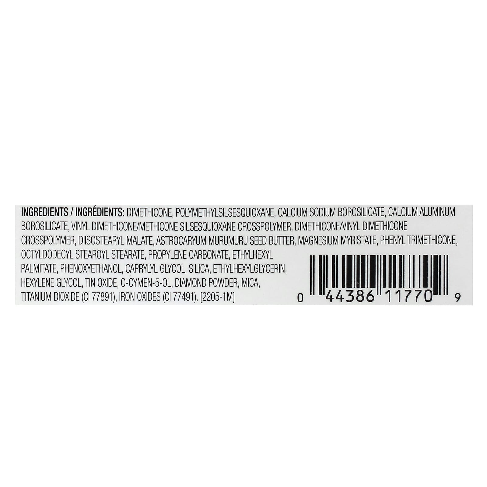 Диметикон, полиметилсилсесквиоксан, кальций алюминий боросиликат, кальций алюминий боросиликат, винил диметикон/метикон силсесквиоксан кроссполимер, диметикон/винил диметикон кроссполимер, диизостеарил малат, масло семян мурумуру (Astrocaryum murumuru), миристат магния, фенилтриметикон, октилдодецил стеароил стеарат, пропиленкарбонат, этилгексил пальмитат, феноксиэтанол, каприлилгликоль, диоксид кремния, этилгексилглицерин, гексиленгликоль, оксид олова, о-цимен-5-ол, алмазный порошок, слюда, диоксид титана (CI 77891), оксиды железа (CI 77491).