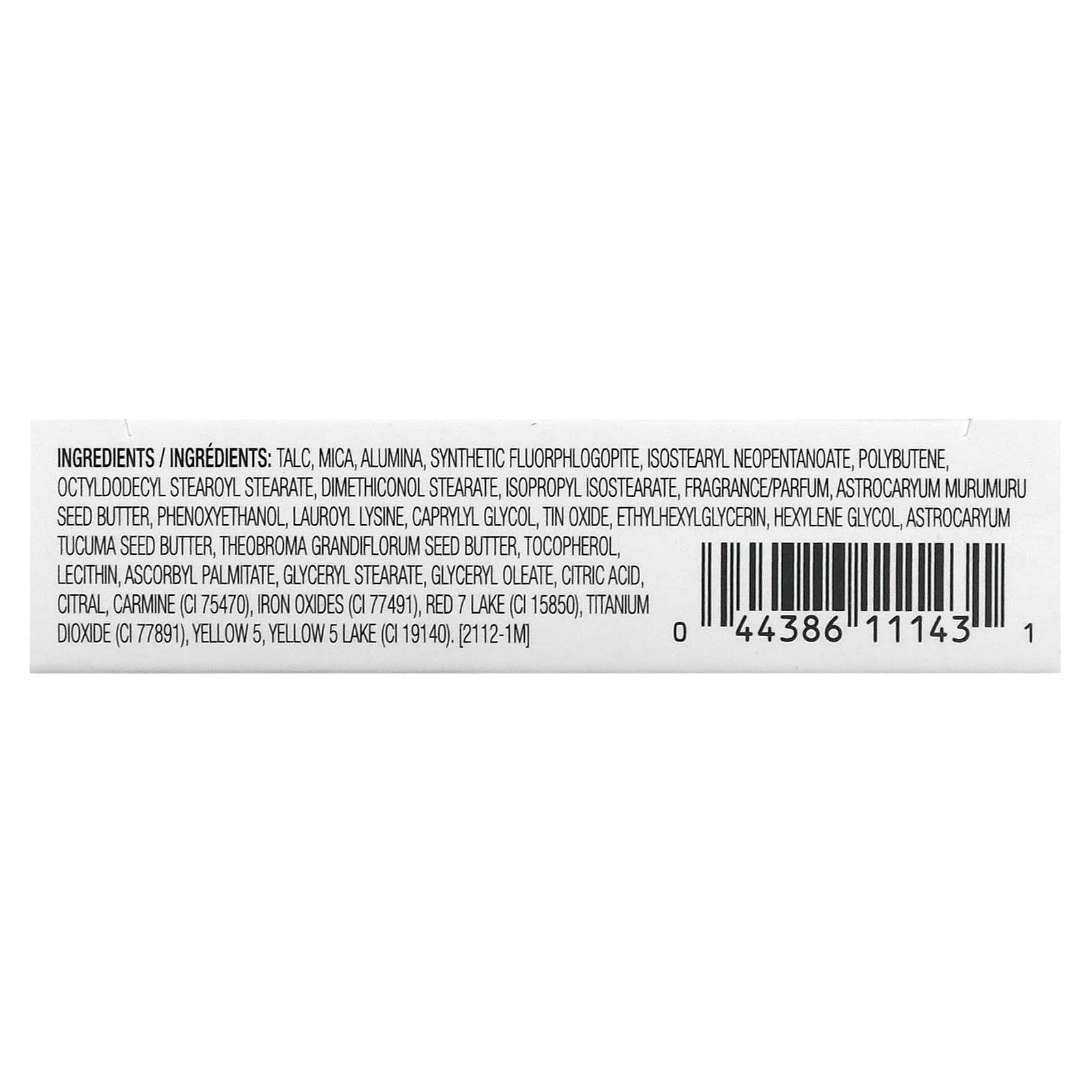 Тальк, слюда, оксид алюминия, синтетический фторфлогопит, изостеарил неопентаноат, полибутен, октилдодецил стеароил стеарат, диметиконол стеарат, изопропил изостеарат, отдушка/парфюмерная композиция, масло семян мурумуру (Astrocaryum murumuru), феноксиэтанол, лаурил лизин, каприлилгликоль, оксид олова, этилгексилглицерин, гексиленгликоль, масло семян астрокариума (Astrocaryum tucuma), масло семян купуасу (Theobroma grandiflorum), токоферол, лецитин, аскорбил пальмитат, глицерил стеарат, глицерил олеат, лимонная кислота, цитраль, кармин (CI 75470), оксиды железа (CI 77491), краситель красный 7 лак (CI 15850), диоксид титана (CI 77891), краситель желтый 5, краситель желтый 5 (CI 19140). [2112–1 мес.].
