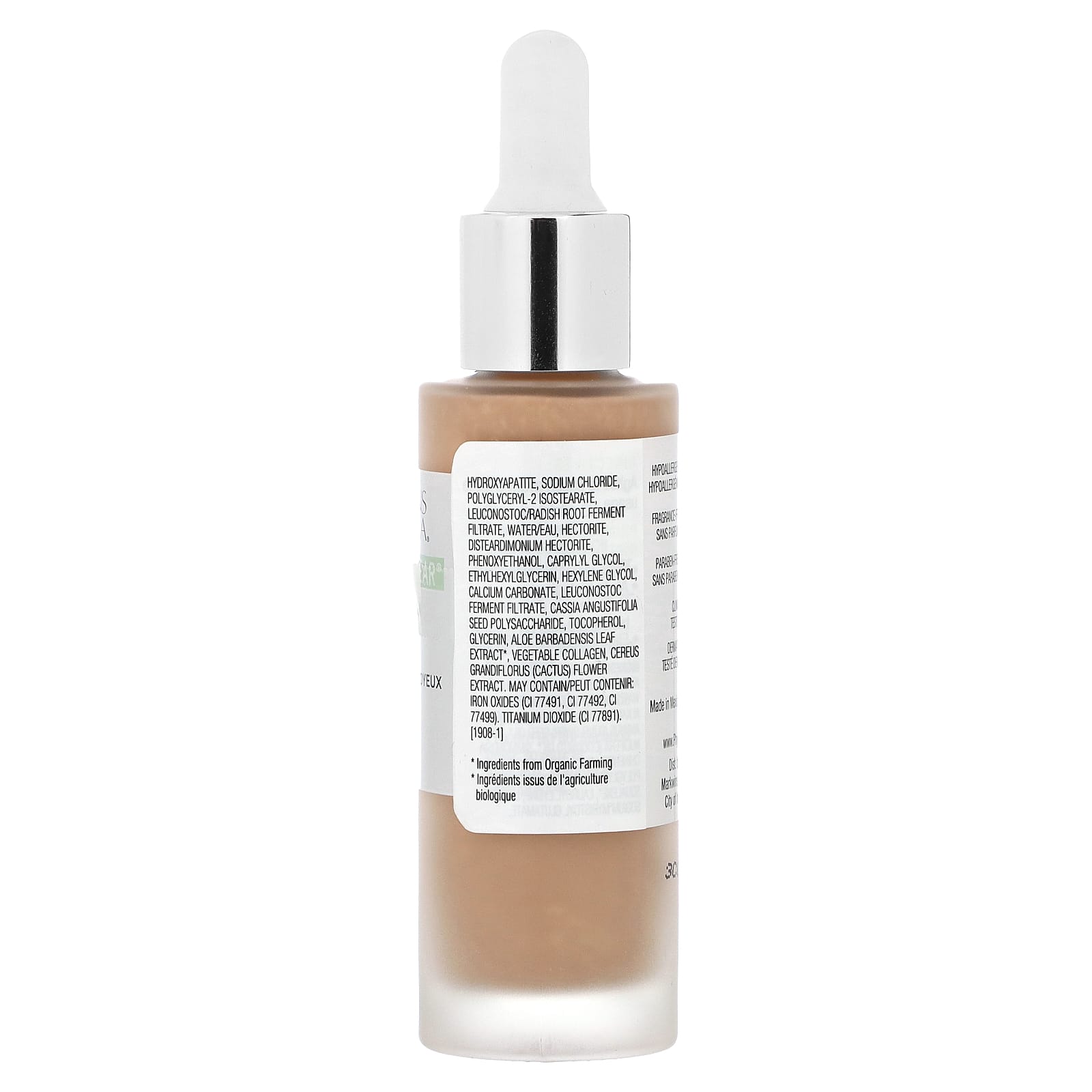 соковая вода апельсина (citrus aurantium dulcis)*, дециловые эфиры оливкового масла *, алкан c9-12, тапиоковый крахмал*, подсолнечное масло (Helianthus annuus)*, кокосовое масло (Cocos nucifera)*, масло семян жожоба (Simmondsia chinensis)*, полиглицерил-6 полирицинолеат, сквален*, лаурил лизин, лецитин*, миристоил глутамат натрия, гидроксиапатит, хлорид натрия, полиглицерил-2 изостеарат, лейконосток/ферментированный фильтрат корня редиса, вода (eau), гекторит, дистеардимония гекторит, феноксиэтанол, каприлилгликоль, этилгексилглицерин, гексиленгликоль, карбонат кальция, ферментированный фильтрат лейконостока, полисахарид из семян сенны александрийской (Cassia angustifolia), токоферол, глицерин, экстракт листьев алоэ вера (Aloe barbadensis)*, растительный коллаген, экстракт цветков кактуса (cereus grandiflorus). Может содержать / peut contenir: оксиды железа (CI 77491, CI 77492, CI 77499). диоксид титана (CI 77891).