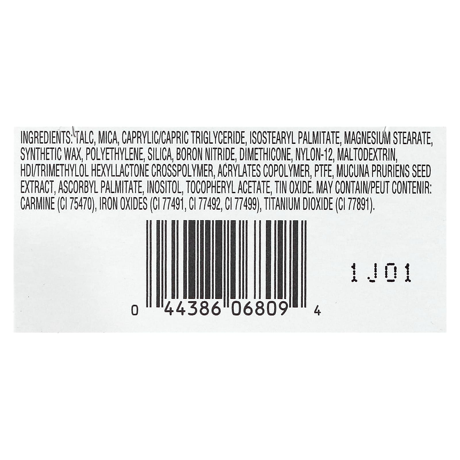 Тальк, слюда, каприловый/каприновый триглицерид, изостеарил пальмитат, стеарат магния, синтетический воск, полиэтилен, диоксид кремния, нитрид бора, диметикон, нейлон-12, мальтодекстрин, HDI/триметилол гексалактон кроссполимер, сополимер акрилатов, ПТФЭ, экстракт семян мукуны жгучей (Mucuna pruriens), аскорбил пальмитат, инозитол, токоферилацетат, оксид олова. Может содержать кармин (CI 75470), оксиды железа (CI 77491, CI 77492, CI 77499), диоксид титана (CI 77891).