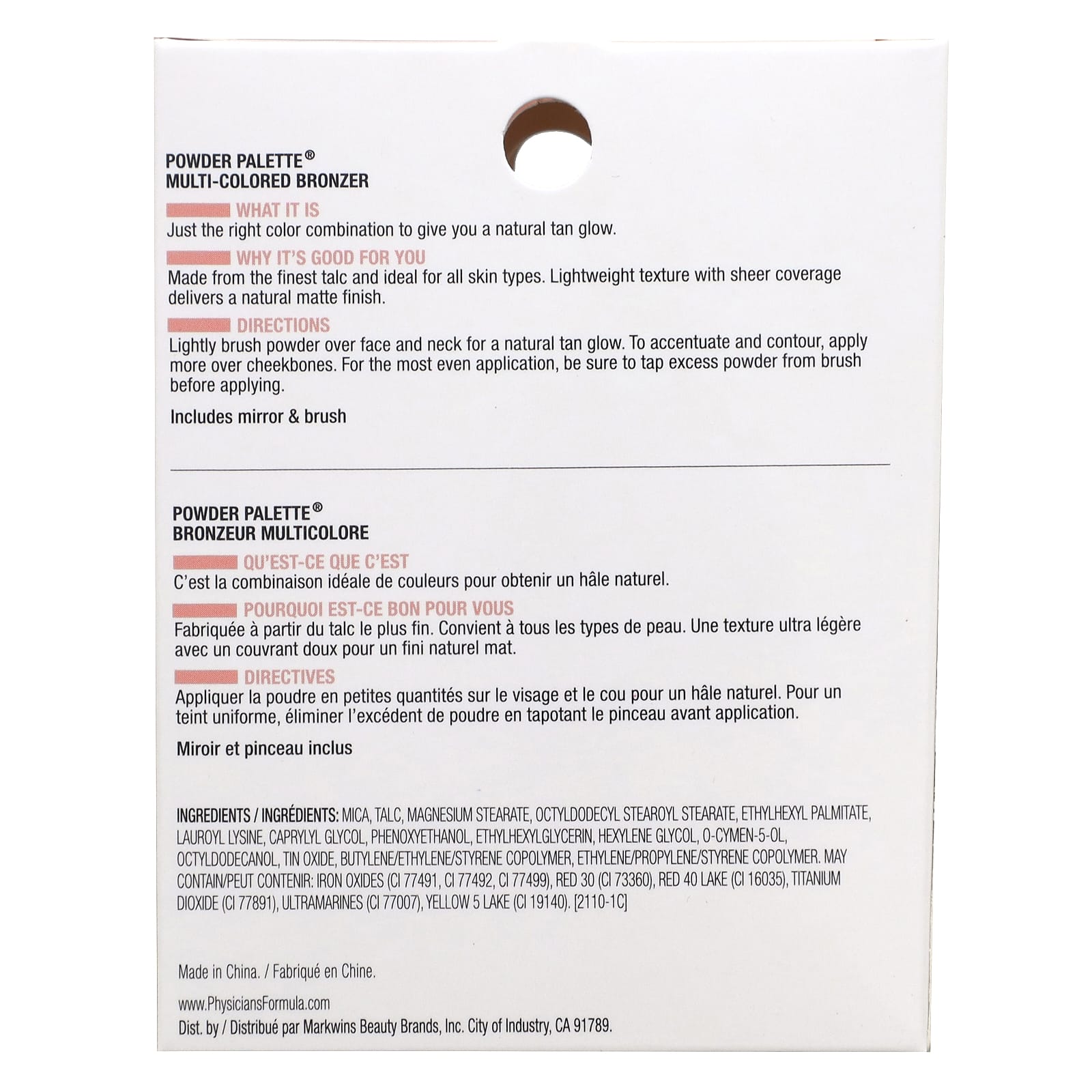 Physicians Formula, Powder Palette, разноцветный бронзер, 1441 бронзер, 9 г (0,3 унции)