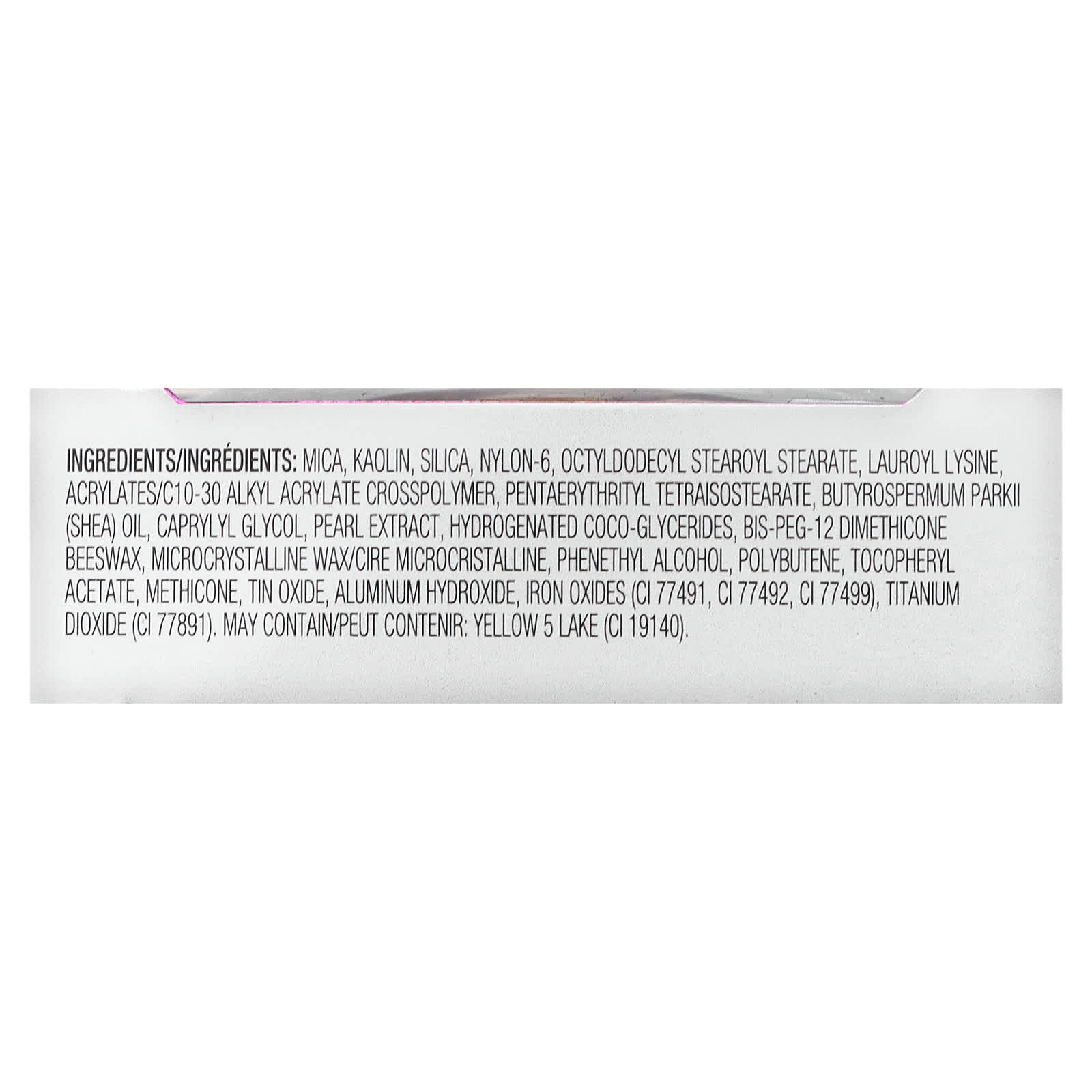 слюда, каолин, диоксид кремния, нейлон-6, октилдодецил стеароил стеарат, лаурил лизин, акрилат/c10-30 алкил акрилат кроссполимер, пентаэритритил тетраизостеарат, масло ши (Butyrospermum parkii), каприлилгликоль, экстракт жемчуга, гидрогенизированные кокоглицериды, бис-ПЭГ-12 диметикон пчелиный воск, воск микрокристаллический / микрокристаллический, фенетиловый спирт, полибутен, токоферилацетат, метикон, оксид олова, гидроксид алюминия, оксиды железа (CI 77491, CI 77492, CI 77499), диоксид титана (CI 77891). Может содержать / peut contenir: yellow 5 lake (CI 19140).