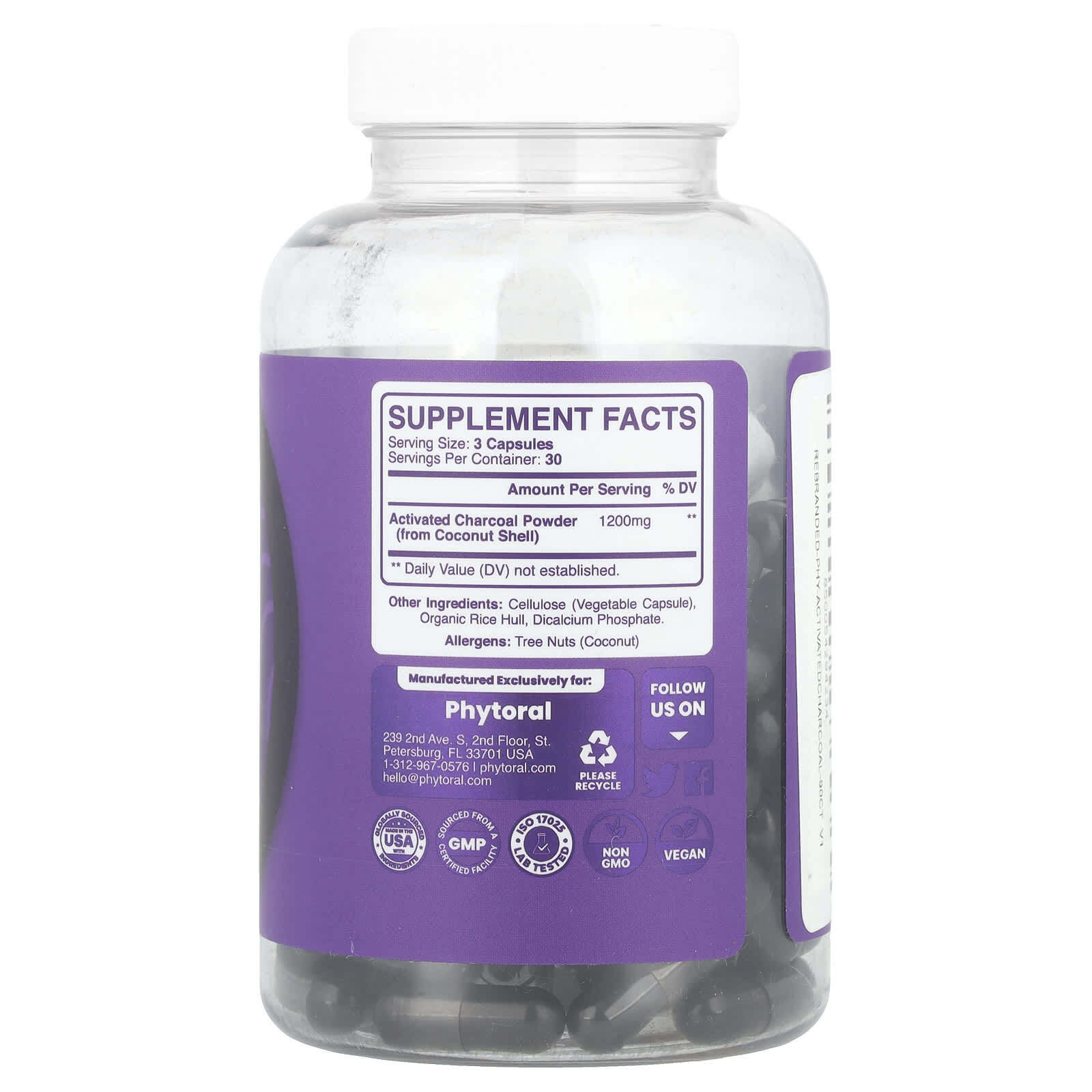Целлюлоза (растительная капсула), органическая рисовая шелуха, дикальций фосфат.