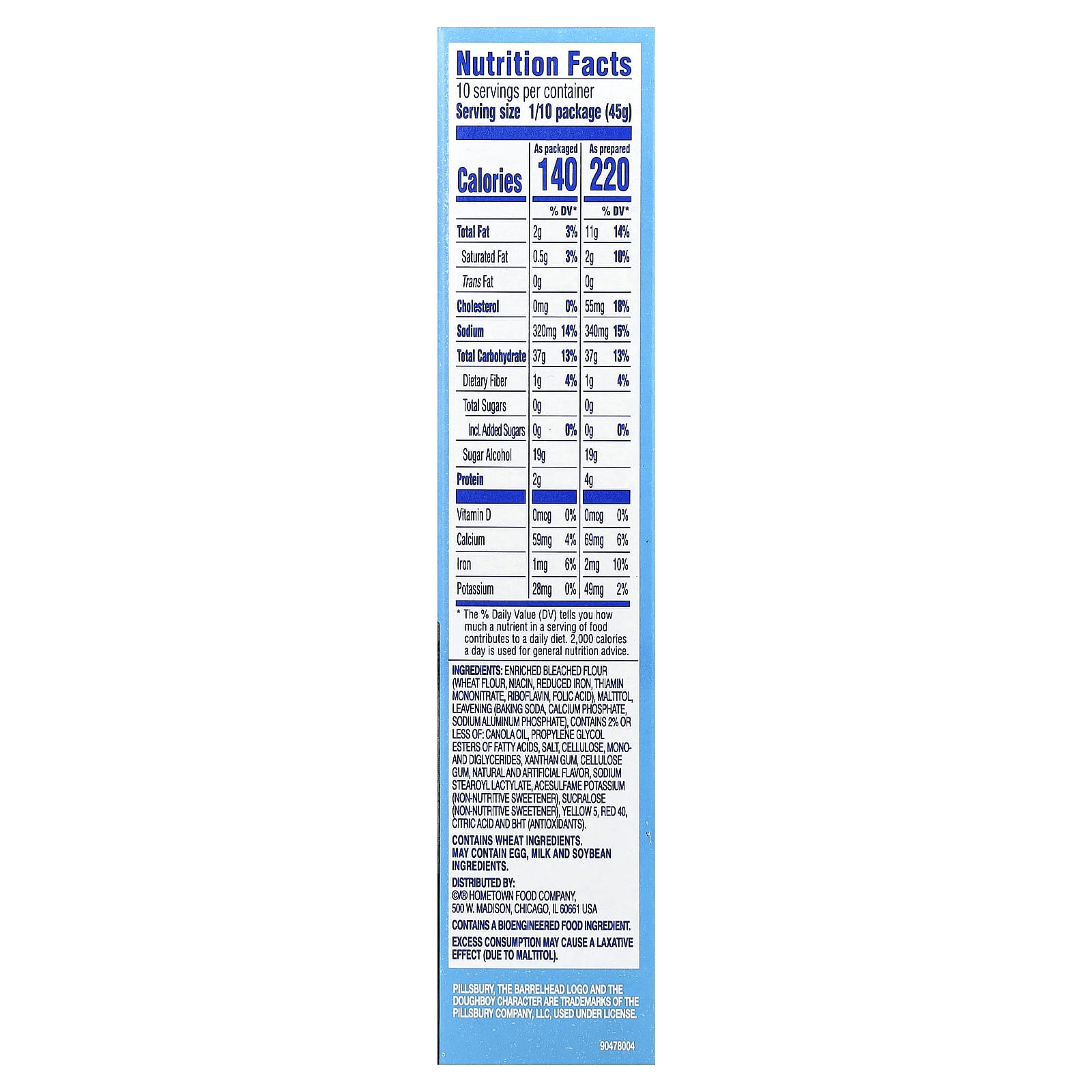 Обогащенная отбеленная мука (пшеничная мука, ниацин, восстановленное железо, мононитрат тиамина, рибофлавин, фолиевая кислота), мальтит, разрыхлитель (пищевая сода, фосфат кальция, фосфат натрия и алюминия), содержит менее 2% следующих ингредиентов: рапсовое масло, эфиры пропиленгликоля и жирных кислот, соль, целлюлоза, моно- и диглицериды, ксантановая камедь, целлюлозная камедь, натуральные и искусственные ароматизаторы, натрия стеароил лактилат, ацесульфам калия (непитательный подсластитель), сукралоза (непитательный подсластитель), краситель желтый 5, краситель красный 40, лимонная кислота и бутилгидрокситолуол (антиоксиданты).