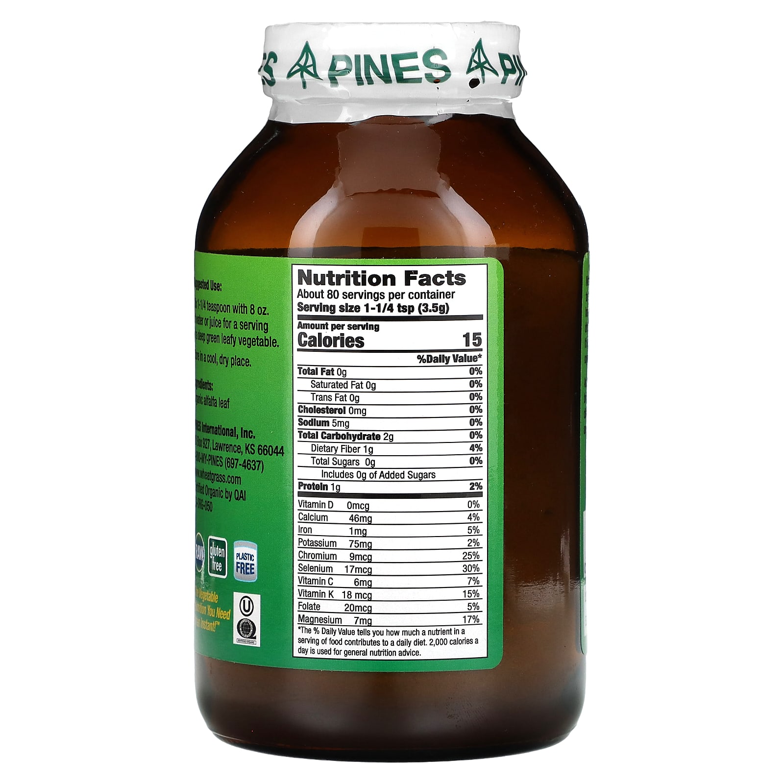 В результате порошок из люцерны имеет ярко-зеленый цвет. Только ярко-зеленая люцерна может обеспечить необходимое количество питательных веществ, обнаруженных в ходе исследования доктором Чарлза Шнабеля и других ученых.