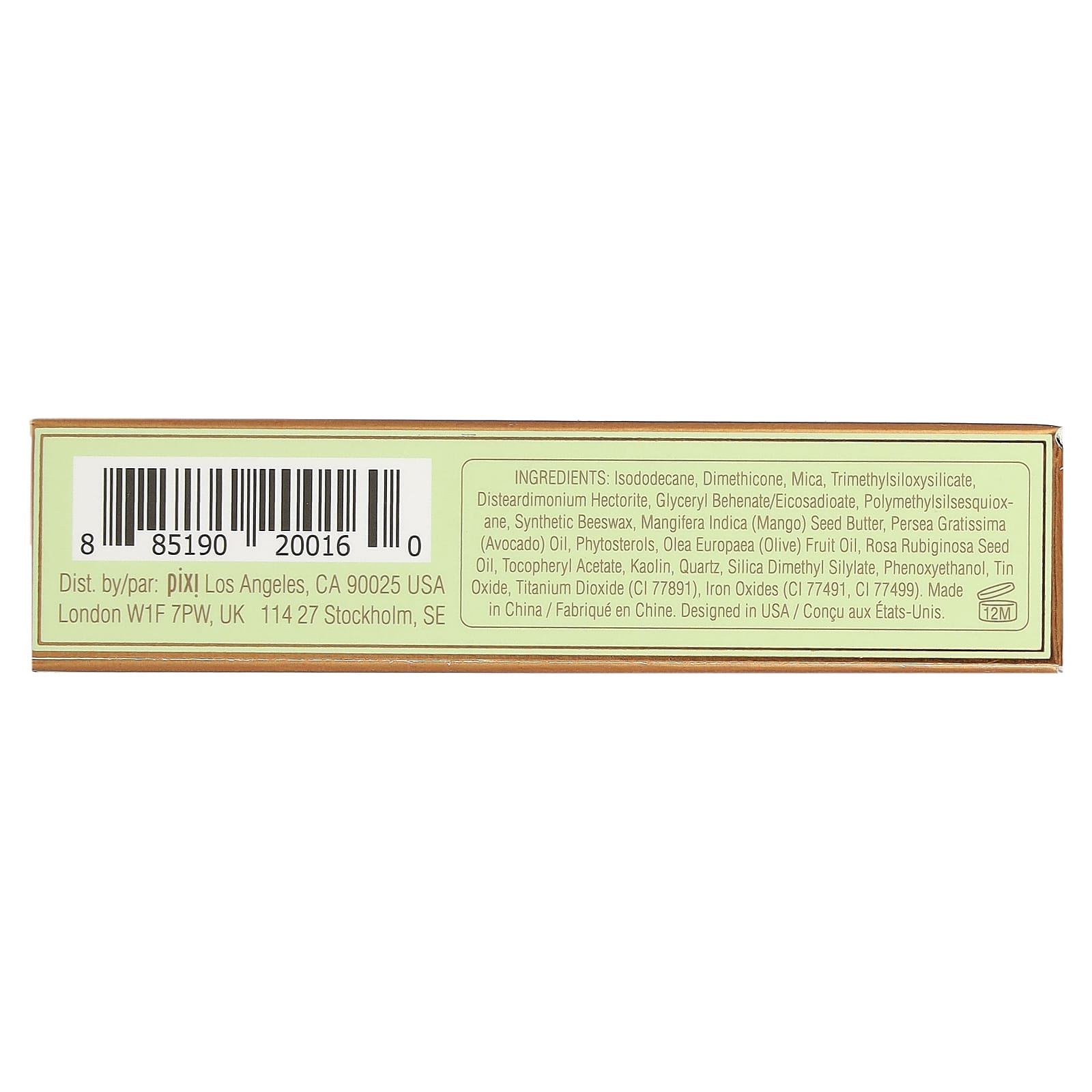 изододекан, диметикон, слюда, триметилсилоксисиликат, дистеардимония гекторит, глицерил бегенат/эйкозадиоат, полиметилсилсесквиоксан, синтетический воск, масло из косточек манго (Mangifera indica), масло авокадо (Persea gratissima), фитостеролы, оливковое масло (Olea europaea), масло семян шиповника (Rosa rubiginosa), токоферилацетат, каолин, кварц, диметил силилат диоксида кремния, феноксиэтанол, оксид олова, диоксид титана (CI 77891), оксиды железа (CI 77491, CI 77499).