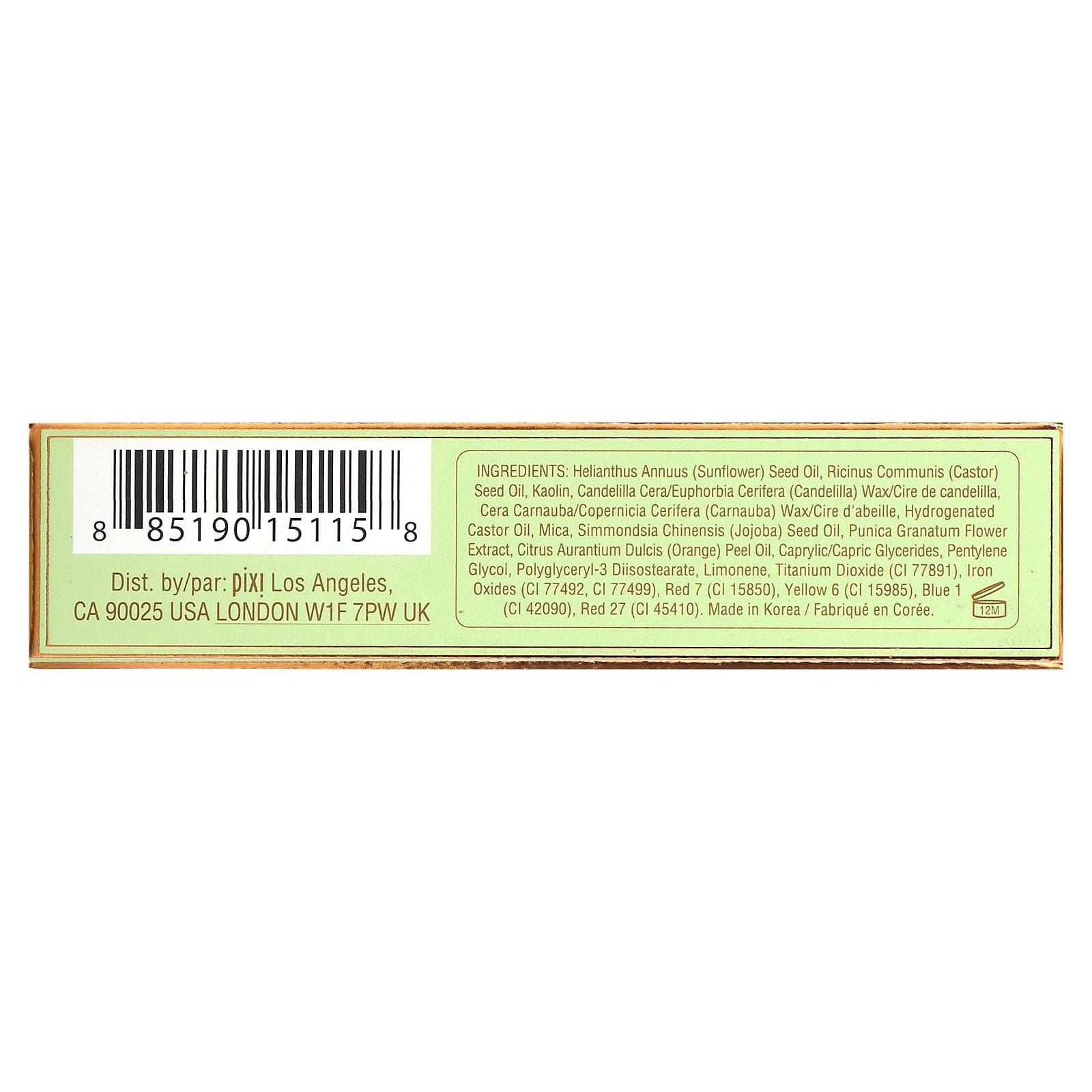Подсолнечное масло (Helianthus annuus), касторовое масло (Ricinus communis), каолин, канделильский воск (Candelilla cera/Euphorbia cerifera), карнаубский воск (Copernicia cerifera), гидрогенизированное касторовое масло, слюда, масло из семян жожоба (Simmondsia chinensis), экстракт цветков граната (Punica granatum), масло из цедры апельсина (Citrus aurantium dulcis), каприловые/каприновые глицериды, пентилен гликоль, полиглицерил-3 диизостеарат, лимонен, диоксид титана (CI 77891), оксиды железа (CI 77492, CI 77499), краситель красный 7 (CI 15850), краситель желтый 6 (CI 15985), краситель синий 1 (CI 42090), краситель красный 27 (CI 45410).
