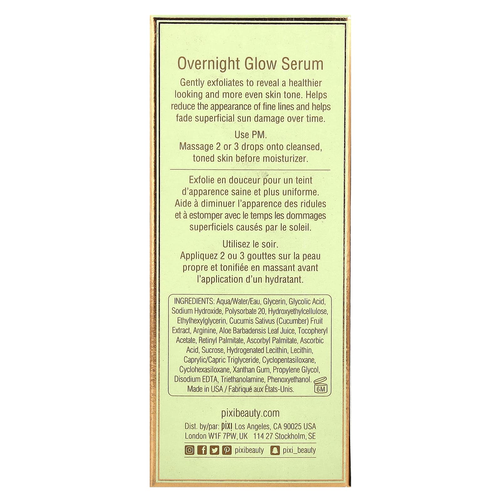Вода / вода / водный раствор, глицерин, гликолевая кислота, гидроксид натрия, полисорбат 20, гидроксиэтилцеллюлоза, феноксиэтанол, пропиленгликоль, этилгексилглицерин, экстракт плодов огурца (cucumis sativus (огурец), аргинин, сок алоэ барбаденсис, динатрия эдта, динатриевый ретинил, токоферилат ацетат, ацетат токогерилата, ацетат натрия, токоферилат ацетат, токогерилат ацетат, токогерилат ацетат, токогерилат ацетат, токогерилат ацетат, токоферилат ацетат аскорбил пальмитат, сахароза, гидрированный лецитин, лецитин, триглицерид каприловой / каприновой кислоты, циклопентасилоксан, bht, циклогексасилоксан, ксантановая камедь, аскорбиновая кислота, триэтаноламин.