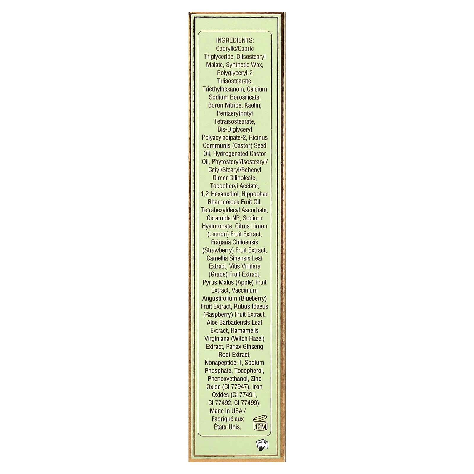 Каприловый/каприновый триглицерид, диизостеарил малат, синтетический воск, полиглицерил-2 триизостеарат, триэтилгексаноин, кальций натрий боросиликат, нитрид бора, каолин, пентаэритритил тетраизостеарат, бис-диглицерил полиациладипат-2, касторовое масло (Ricinus communis), гидрогенизированное касторовое масло, фитостерил/изостеарил/цетил/стеарил/бегенил димер дилинолеат, токоферилацетат, 1,2-гександиол, масло из плодов облепихи крушиновидной (Hippophae rhamnoides), тетрагексилдецил аскорбат, керамид NP, гиалуронат натрия, экстракт плодов лимона (Citrus limon), экстракт ягод клубники (Fragaria chiloensis), экстракт листьев зелёного чая (Camellia sinensis), экстракт плодов винограда (Vitis vinifera), экстракт яблока (Pyrus malus), экстракт ягод голубики (Vaccinium angustifolium), экстракт ягод малины (Rubus idaeus), экстракт листьев алоэ вера (Aloe barbadensis), экстракт гамамелиса (Hamamelis virginiana), экстракт корня женьшеня (Panax ginseng), нонапептид-1, фосфат натрия, токоферол, феноксиэтанол, оксид цинка (CI 77947), оксиды железа (CI 77491, CI 77492, CI 77499).