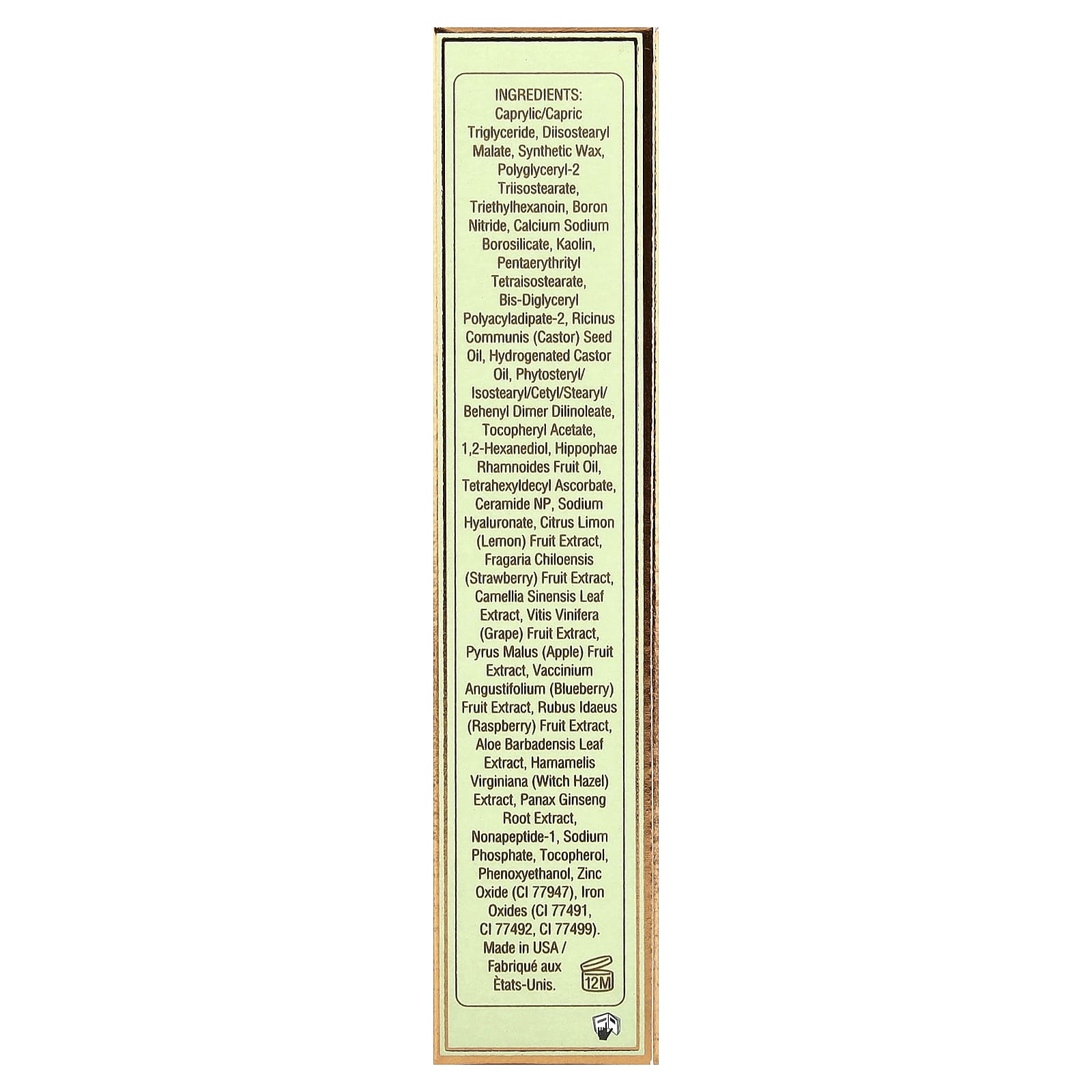 Каприловый/каприновый триглицерид, диизостеарил малат, синтетический воск, полиглицерил-2 триизостеарат, триэтилгексаноин, нитрид бора, кальций натрий боросиликат, каолин, пентаэритритил тетраизостеарат, бис-диглицерил полиациладипат-2, касторовое масло (Ricinus communis), гидрогенизированное касторовое масло, фитостерил/изостеарил/цетил/стеарил/бегенил димер дилинолеат, токоферилацетат, 1,2-гександиол, масло из плодов облепихи крушиновидной (Hippophae rhamnoides), тетрагексилдецил аскорбат, керамид NP, гиалуронат натрия, экстракт плодов лимона (Citrus limon), экстракт ягод клубники (Fragaria chiloensis), экстракт листьев зелёного чая (Camellia sinensis), экстракт плодов винограда (Vitis vinifera), экстракт яблока (Pyrus malus), экстракт ягод голубики (Vaccinium angustifolium), экстракт ягод малины (Rubus idaeus), экстракт листьев алоэ вера (Aloe barbadensis), экстракт гамамелиса (Hamamelis virginiana), экстракт корня женьшеня (Panax ginseng), нонапептид-1, фосфат натрия, токоферол, феноксиэтанол, оксид цинка (CI 77947), оксиды железа (CI 77491, CI 77492, CI 77499).