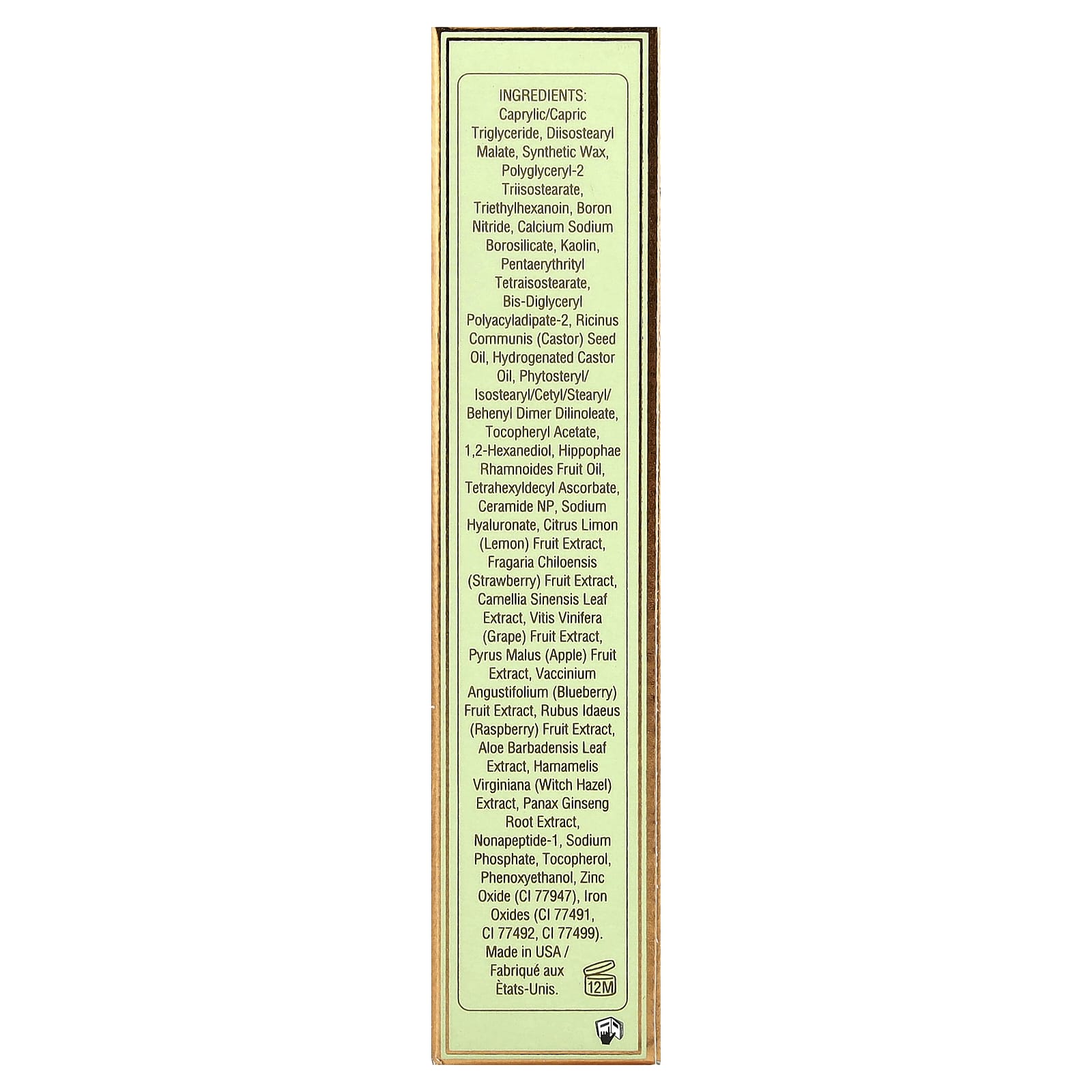 Каприловый/каприновый триглицерид, диизостеарил малат, синтетический воск, полиглицерил-2 триизостеарат, триэтилгексаноин, нитрид бора, кальций натрий боросиликат, каолин, пентаэритритил тетраизостеарат, бис-диглицерил полиациладипат-2, касторовое масло (Ricinus communis), гидрогенизированное касторовое масло, фитостерил/изостеарил/цетил/стеарил/бегенил димер дилинолеат, токоферилацетат, 1,2-гександиол, масло из плодов облепихи крушиновидной (Hippophae rhamnoides), тетрагексилдецил аскорбат, керамид NP, гиалуронат натрия, экстракт плодов лимона (Citrus limon), экстракт ягод клубники (Fragaria chiloensis), экстракт листьев зелёного чая (Camellia sinensis), экстракт плодов винограда (Vitis vinifera), экстракт яблока (Pyrus malus), экстракт ягод голубики (Vaccinium angustifolium), экстракт ягод малины (Rubus idaeus), экстракт листьев алоэ вера (Aloe barbadensis), экстракт гамамелиса (Hamamelis virginiana), экстракт корня женьшеня (Panax ginseng), нонапептид-1, фосфат натрия, токоферол, феноксиэтанол, оксид цинка (CI 77947), оксиды железа (CI 77491, CI 77492, CI 77499).