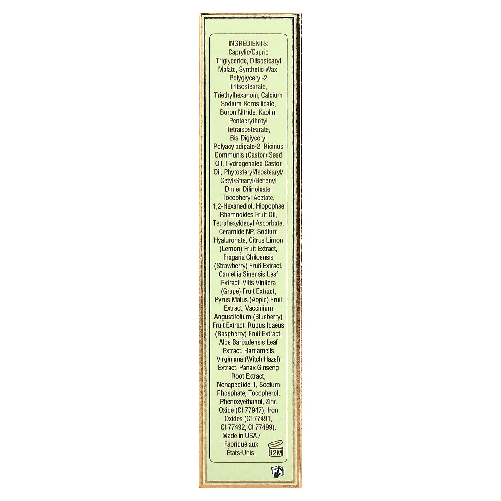 Каприловый/каприновый триглицерид, диизостеарил малат, синтетический воск, полиглицерил-2 триизостеарат, триэтилгексаноин, нитрид бора, кальций натрий боросиликат, каолин, пентаэритритил тетраизостеарат, бис-диглицерил полиациладипат-2, касторовое масло (Ricinus communis), гидрогенизированное касторовое масло, фитостерил/изостеарил/цетил/стеарил/бегенил димер дилинолеат, токоферилацетат, 1,2-гександиол, масло из плодов облепихи крушиновидной (Hippophae rhamnoides), тетрагексилдецил аскорбат, керамид NP, гиалуронат натрия, экстракт плодов лимона (Citrus limon), экстракт ягод клубники (Fragaria chiloensis), экстракт листьев зелёного чая (Camellia sinensis), экстракт плодов винограда (Vitis vinifera), экстракт яблока (Pyrus malus), экстракт ягод голубики (Vaccinium angustifolium), экстракт ягод малины (Rubus idaeus), экстракт листьев алоэ вера (Aloe barbadensis), экстракт гамамелиса (Hamamelis virginiana), экстракт корня женьшеня (Panax ginseng), нонапептид-1, фосфат натрия, токоферол, феноксиэтанол, оксид цинка (CI 77947), оксиды железа (CI 77491, CI 77492, CI 77499).