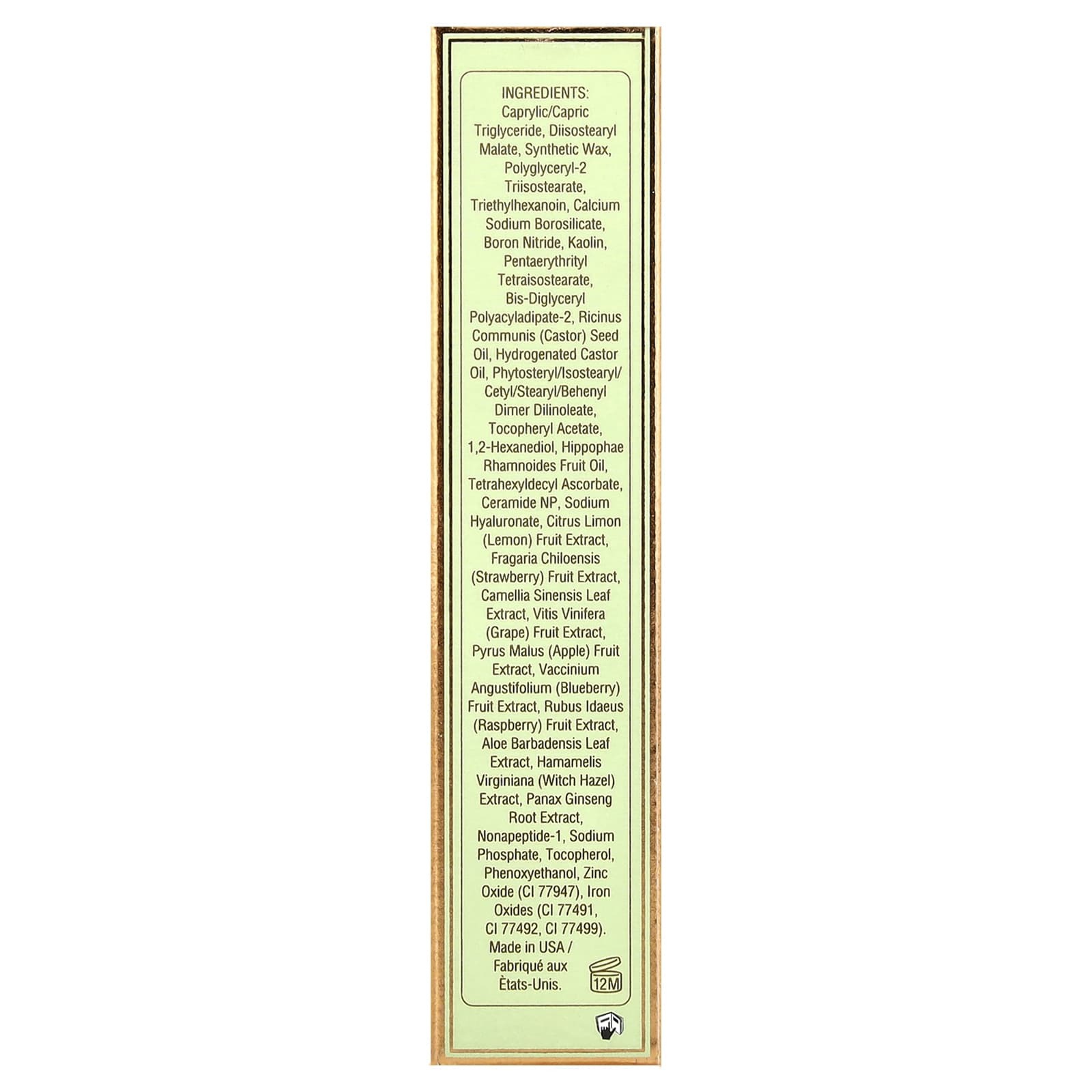 Каприловый/каприновый триглицерид, диизостеарил малат, синтетический воск, полиглицерил-2 триизостеарат, триэтилгексаноин, кальций натрий боросиликат, нитрид бора, каолин, пентаэритритил тетраизостеарат, бис-диглицерил полиациладипат-2, касторовое масло (Ricinus communis), гидрогенизированное касторовое масло, фитостерил/изостеарил/цетил/стеарил/бегенил димер дилинолеат, токоферилацетат, 1,2-гександиол, масло из плодов облепихи крушиновидной (Hippophae rhamnoides), тетрагексилдецил аскорбат, керамид NP, гиалуронат натрия, экстракт плодов лимона (Citrus limon), экстракт ягод клубники (Fragaria chiloensis), экстракт листьев зелёного чая (Camellia sinensis), экстракт плодов винограда (Vitis vinifera), экстракт яблока (Pyrus malus), экстракт ягод голубики (Vaccinium angustifolium), экстракт ягод малины (Rubus idaeus), экстракт листьев алоэ вера (Aloe barbadensis), экстракт гамамелиса (Hamamelis virginiana), экстракт корня женьшеня (Panax ginseng), нонапептид-1, фосфат натрия, токоферол, феноксиэтанол, оксид цинка (CI 77947), оксиды железа (CI 77491, CI 77492, CI 77499).