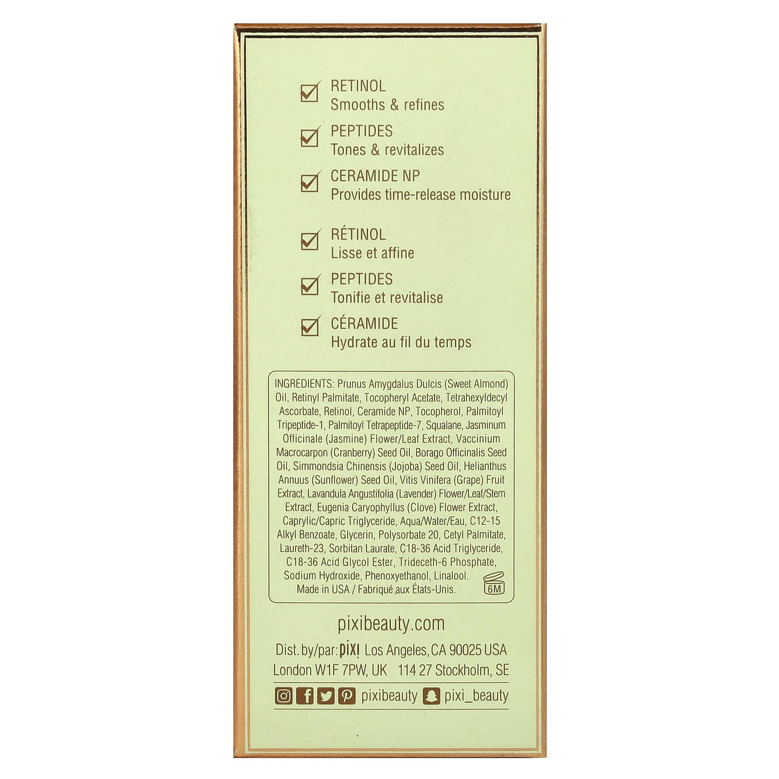 Масло сладкого миндаля (Prunus amygdalus dulcis), ретинилпальмитат, токоферилацетат, тетрагексилдецил аскорбат, ретинол, керамид NP, токоферол, пальмитоил трипептид-1, пальмитоил тетрапептид-7, сквалан, экстракт цветов и листьев жасмина (Jasminum officinale), масло семян клюквы (Vaccinium macrocarpon), масло семян бурачника (Borago officinalis), масло семян жожоба (Simmondsia chinensis), подсолнечное масло (Helianthus annuus), экстракт плодов винограда (Vitis vinifera), экстракт цветков/листьев/стеблей лаванды (Lavandula angustifolia), экстракт цветков гвоздичного дерева (Eugenia caryophyllus), каприловый/каприновый триглицерид, вода, c12-15 алкил бензоат, глицерин, полисорбат 20, цетил пальмитат, лаурет-23, сорбитан лаурат, c18-36 триглицериды кислот, гликолевый эфир c18-36 кислотами, цетет-6 фосфат, гидроксид натрия, феноксиэтанол, линалоол.