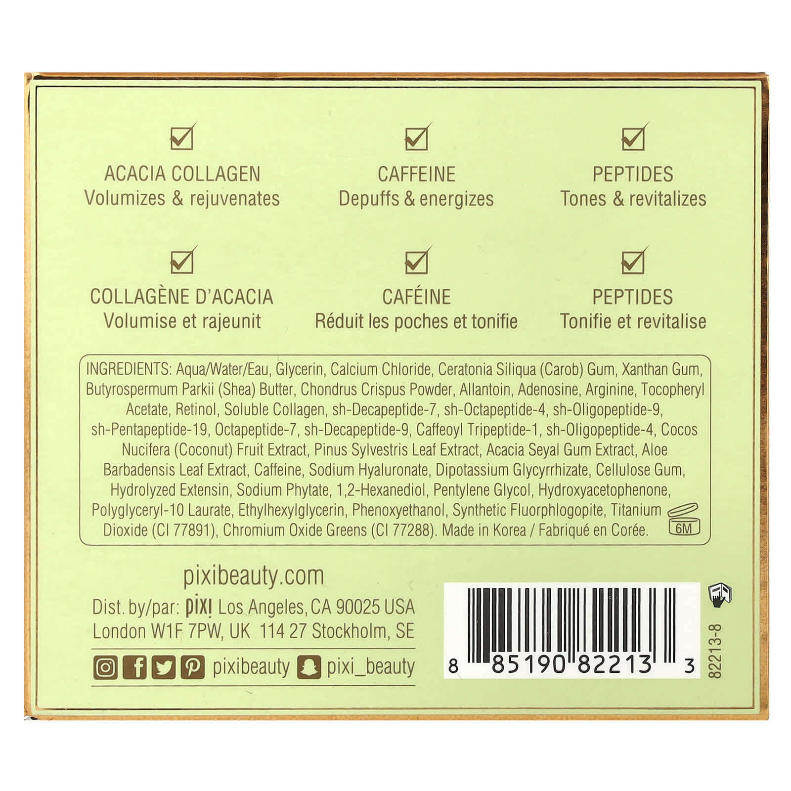 Кожа под глазами омолаживается и восстанавливается. Содержит растительный коллаген, который укрепляет и разглаживает кожу. Пептиды тонизируют, а кофеин заряжает энергией область под глазами. Гидрогелевые патчи увлажняют нежную область вокруг глаз.
