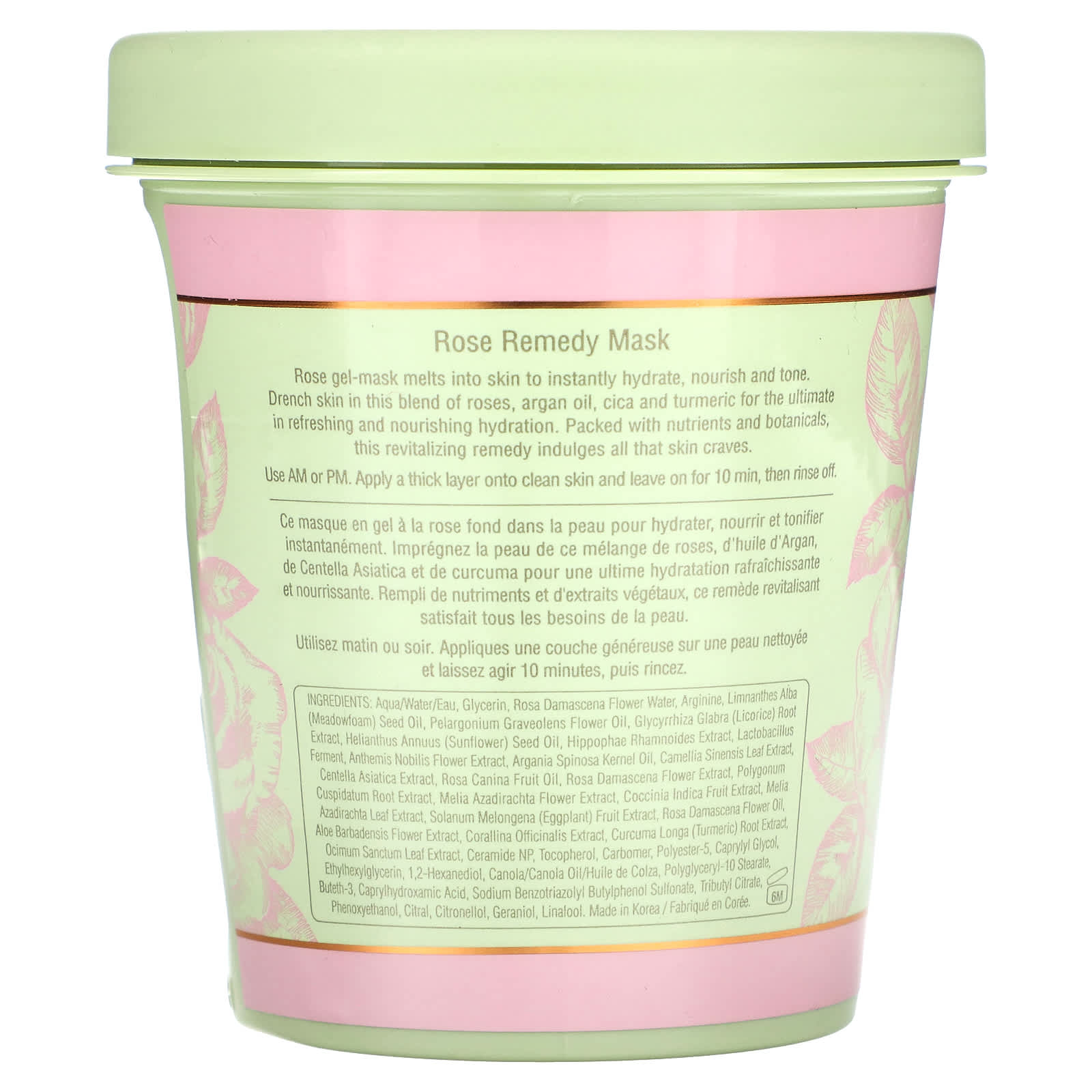 Гель-маска с розой тает на коже, мгновенно увлажняя, питая и тонизируя ее. Нанесите на кожу смесь розы, арганового масла, цики и куркумы, чтобы обеспечить максимальную свежесть, питание и увлажнение. Это восстанавливающее средство, богатое питательными веществами и растительными компонентами, удовлетворит все потребности кожи.