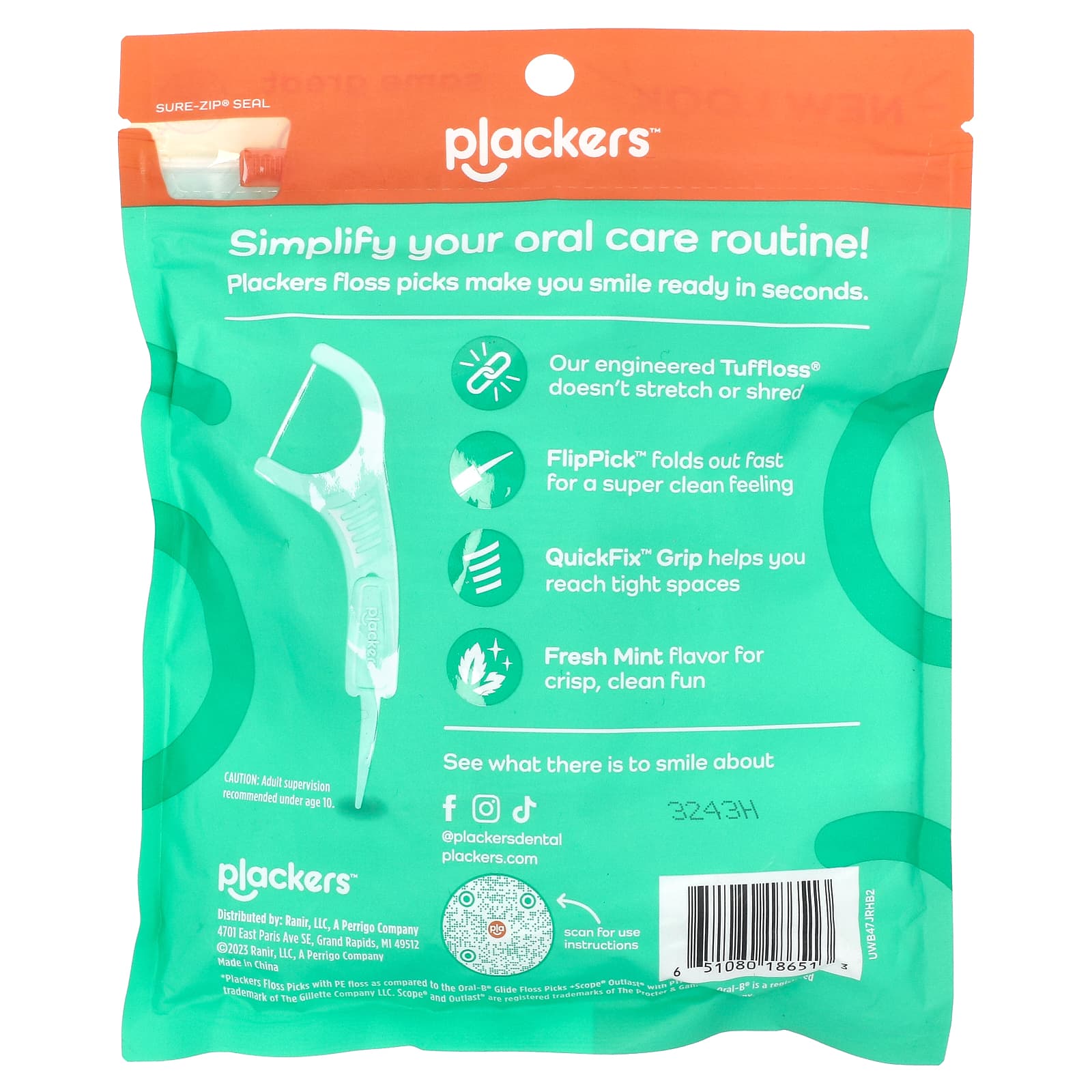 * Палочки Plackers Floss Picks с ПЭ нитью по сравнению с Oral-B® Glide Floss Picks и Scope® Outlast® с ПТФЭ.