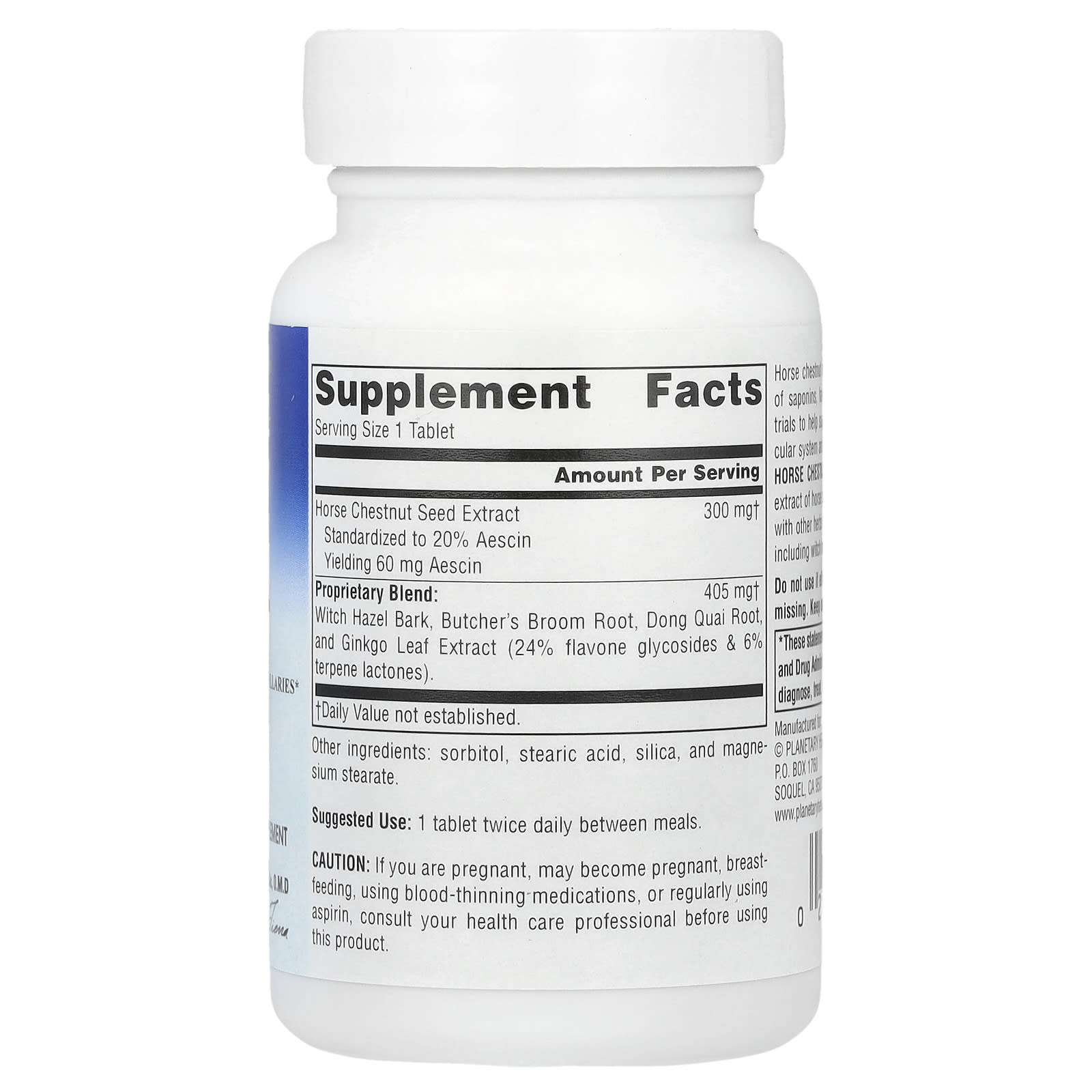 В ходе многочисленных клинических испытаний было доказано, что экстракты конского каштана, содержащие эсцин, комплекс сапонинов, помогают поддерживать здоровое состояние сосудистой системы и соединительной ткани. Продукт Planetary Herbals Horse Chestnut Vein Strength™ содержит экстракт конского каштана, стандартизированный до 20% эсцина, и другие травы, которые используют для поддержки сосудистой системы, включая гамамелис, иглицу колючую и гинкго билоба.