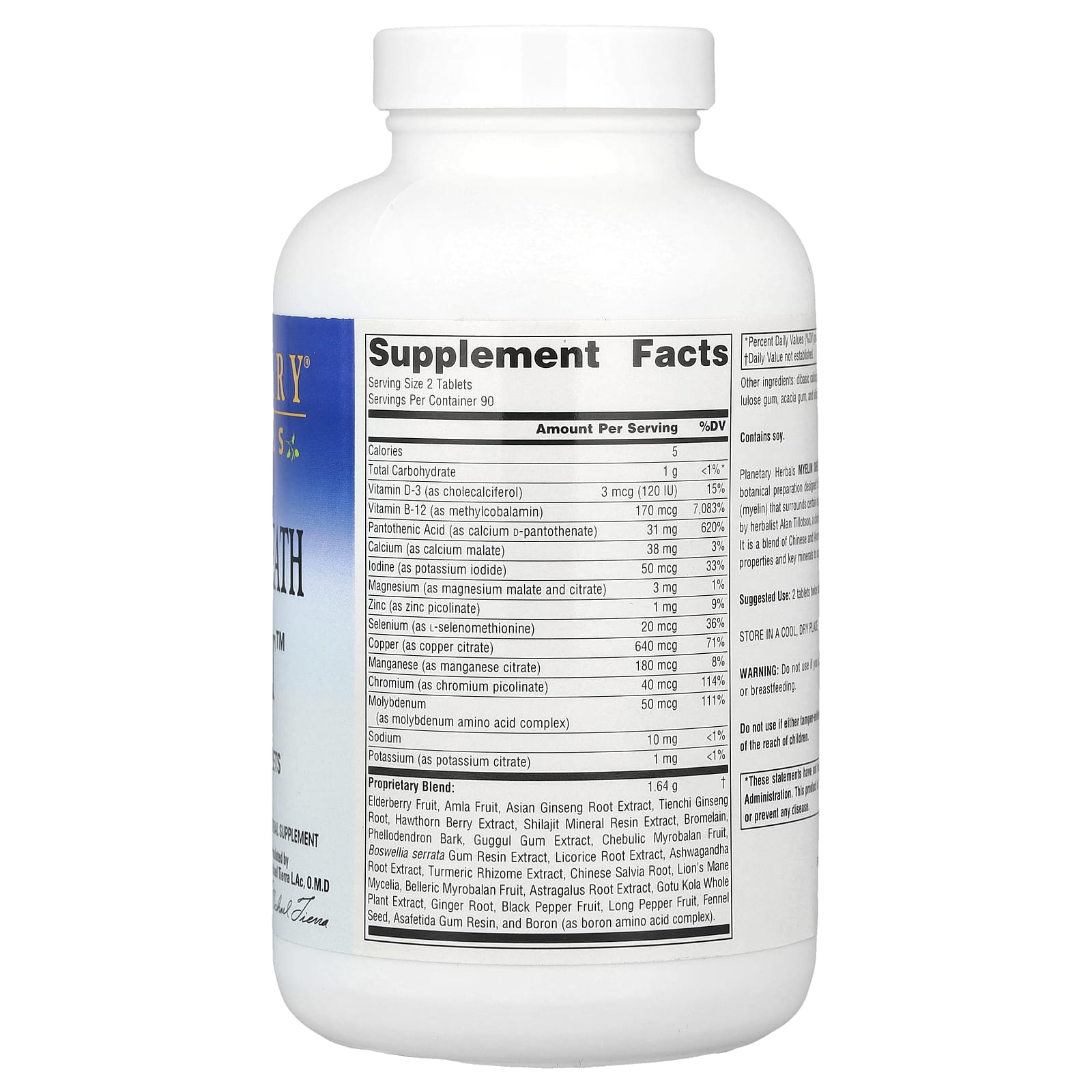 | Запатентованная смесь: Плоды бузины, плоды амлы, экстракт корня азиатского женьшеня, корень женьшеня тиенчи, экстракт ягод боярышника, экстракт минеральной смолы мумие, бромелаин, кора феллодендрона, экстракт камеди гуггула, плоды чебуличного миробалана, экстракт камеди босвеллии пильчатой, экстракт корня солодки , Экстракт корневища куркумы, корень шалфея китайской, мицелий гривы львиной, плоды беллерика миробалана, экстракт корня астрагала, экстракт цельного растения готу кола, корень имбиря, плоды черного перца, плоды длинного перца, семена фенхеля, смола асафетиды и бор (в виде бора). аминокислотный комплекс). | 1,64 г | † |