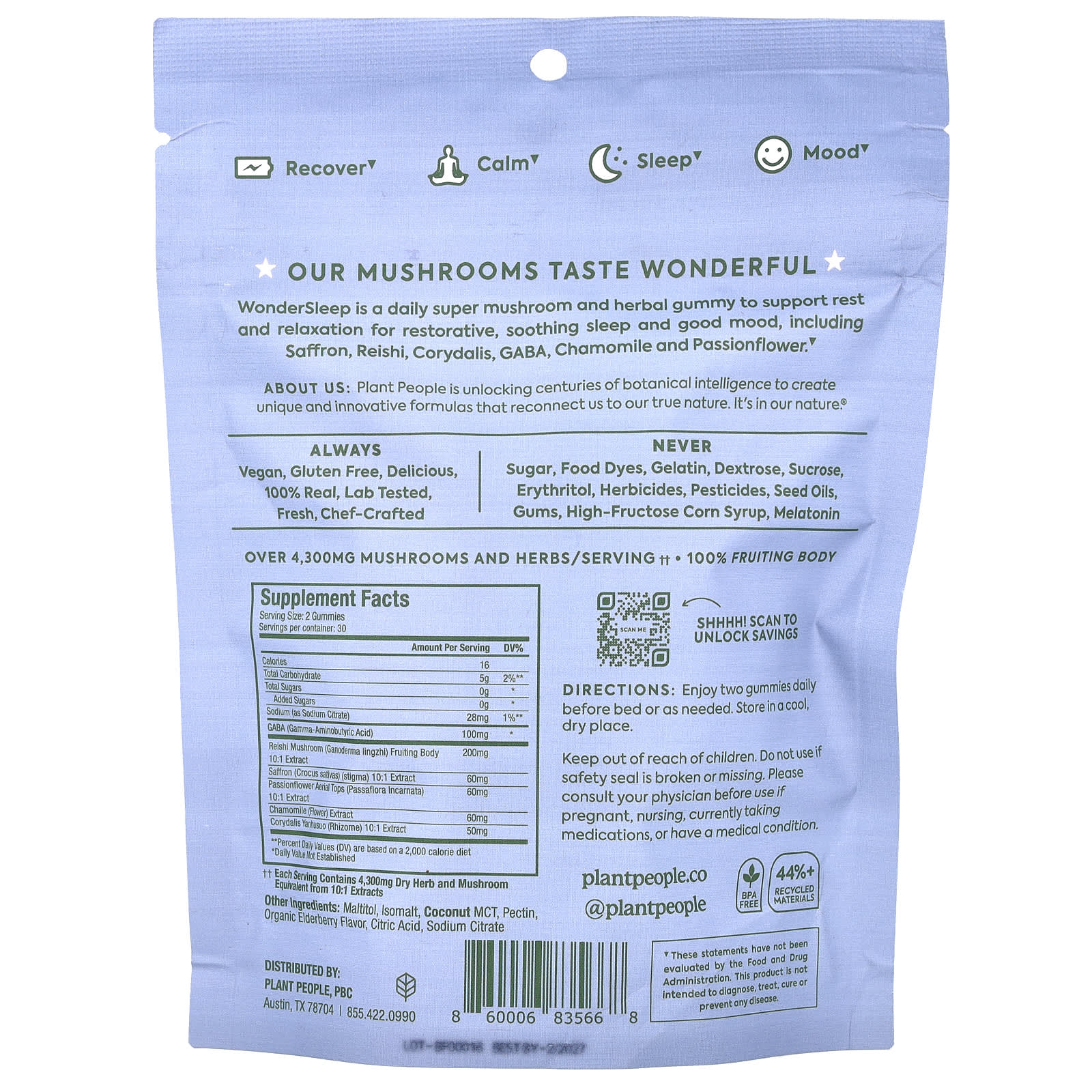 WonderSleep - это ежедневные супергрибные и травяные жевательные мармеладки, содержащие шафран, рейши и коридалис. ГАМК, ромашка и пассифлора.