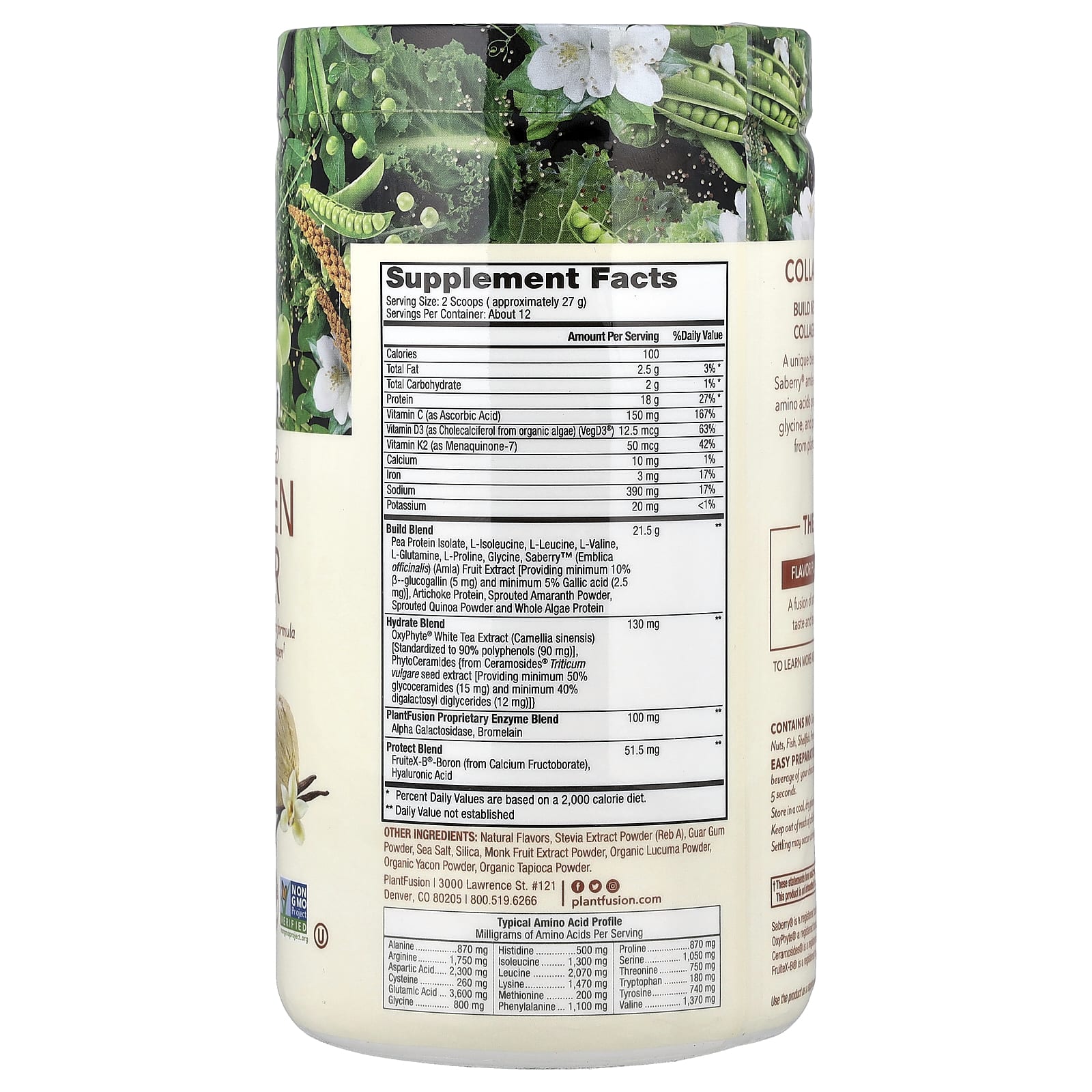 | Комплекс протеинов и аминокислот PlantFusion: изолят горохового белка, L-изолейцин, L-лейцин, L-валин, L-глутамин, белок из артишока, порошок из органического пророщенного амаранта, порошок из органического пророщенного киноа, белок из цельных водорослей | 21 г | ** |