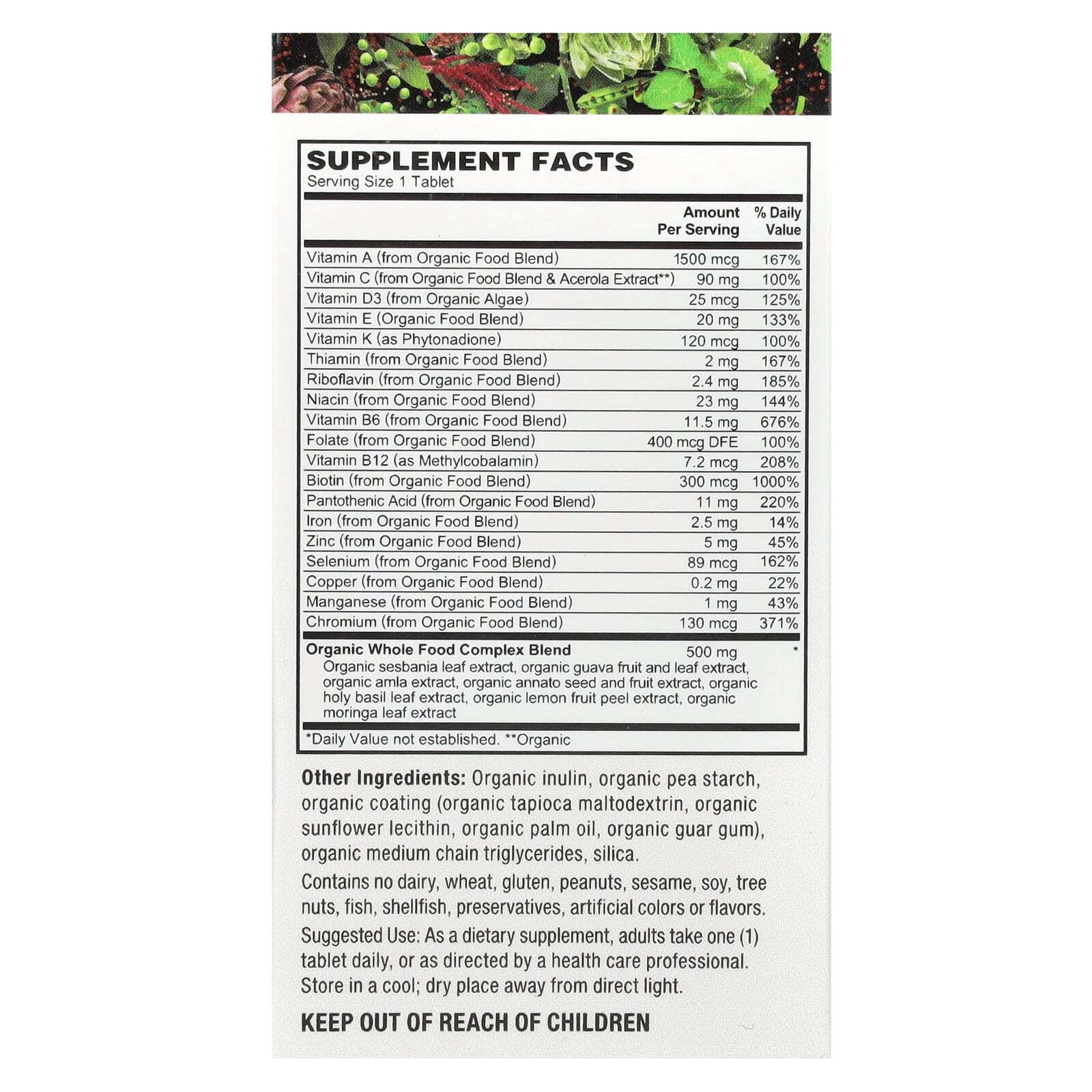 Фолат (из смеси органических пищевых продуктов) | 400 мкг DFE | 100% |