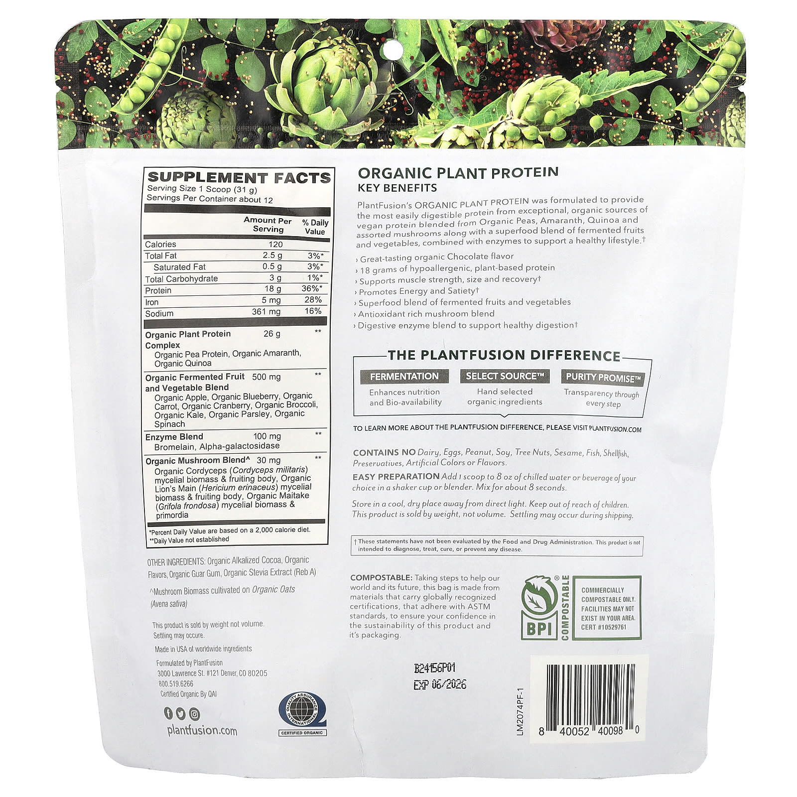 Органический растительный протеин PlantFusion был разработан для обеспечения наиболее легкоусвояемого протеина из исключительных органических источников веганского белка, смешанного из органического гороха, амаранта, киноа и разных грибов, а также суперпродуктовой смеси ферментированных фруктов и овощей в сочетании с ферментами для поддержания здоровья образ жизни.