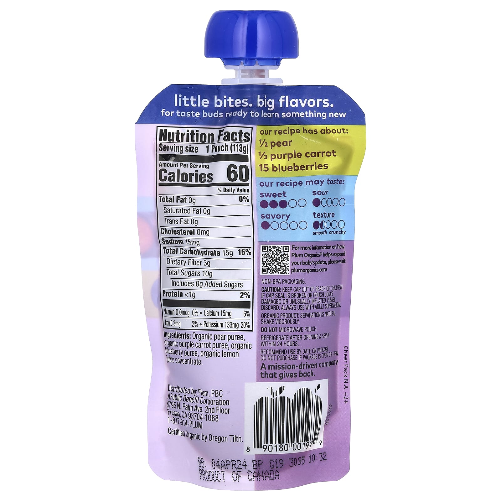 Органическое пюре из груш, органическое фиолетовое морковное пюре, органическое пюре из черники, органический концентрат лимонного сока.