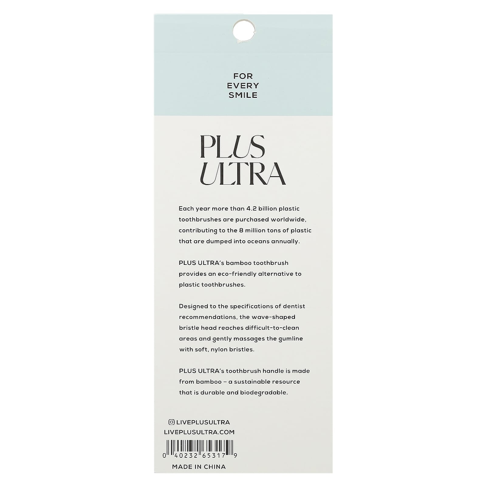 Ручка зубной щетки Ultra Plus изготовлена из бамбука — это экологически чистый, долговечный и биоразлагаемый ресурс.