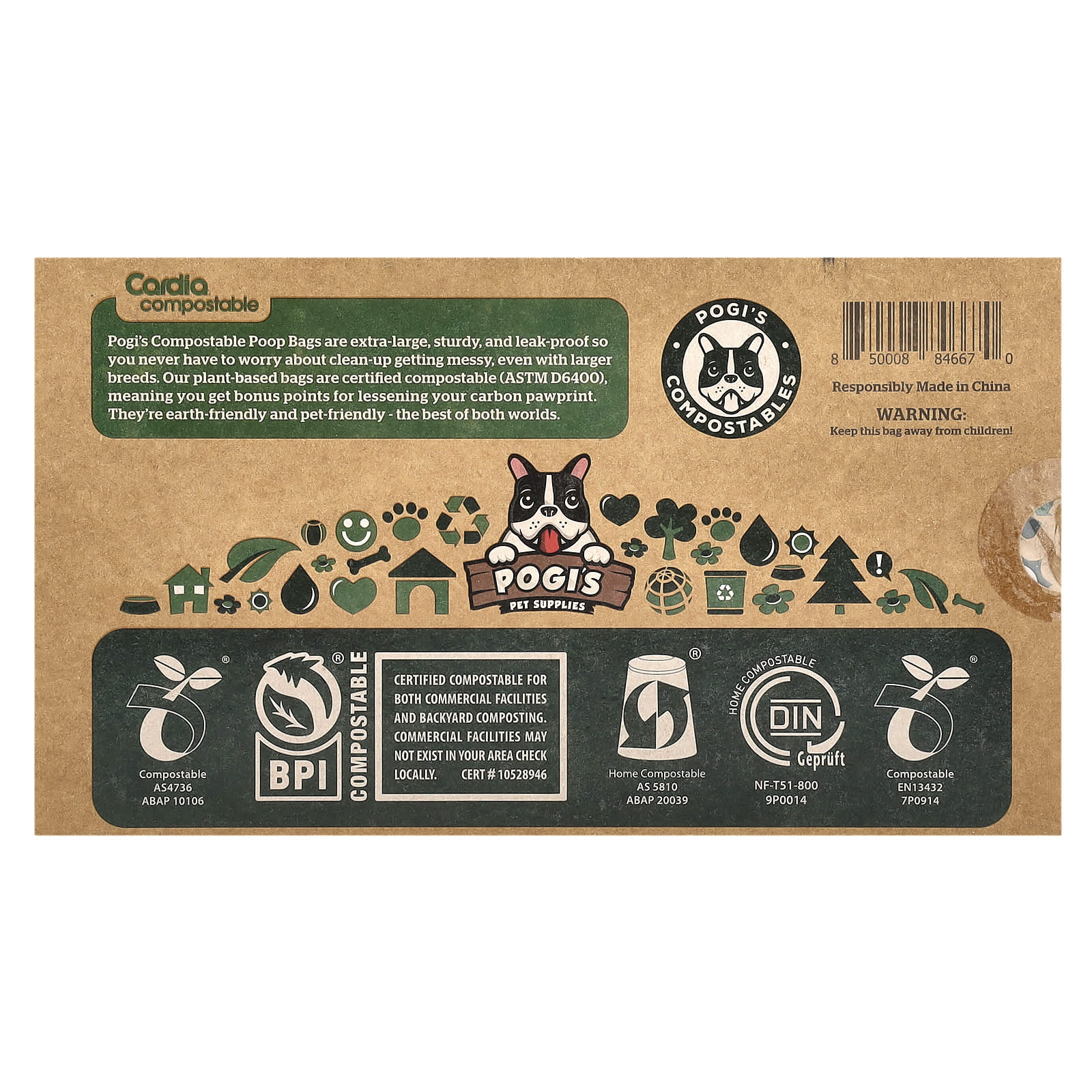 Компостируемые пакеты для кормов от Pogi очень большие, прочные и герметичные, поэтому вам никогда не придется беспокоиться о том, что уборка может испортиться, даже с более крупными породами. Наши пакеты на растительной основе сертифицированы для компостирования (ASTM D6400), что означает, что вы получаете бонусные баллы за уменьшение выбросов углекислого газа. Они экологичны и подходят для домашних животных - лучшее из обоих миров.