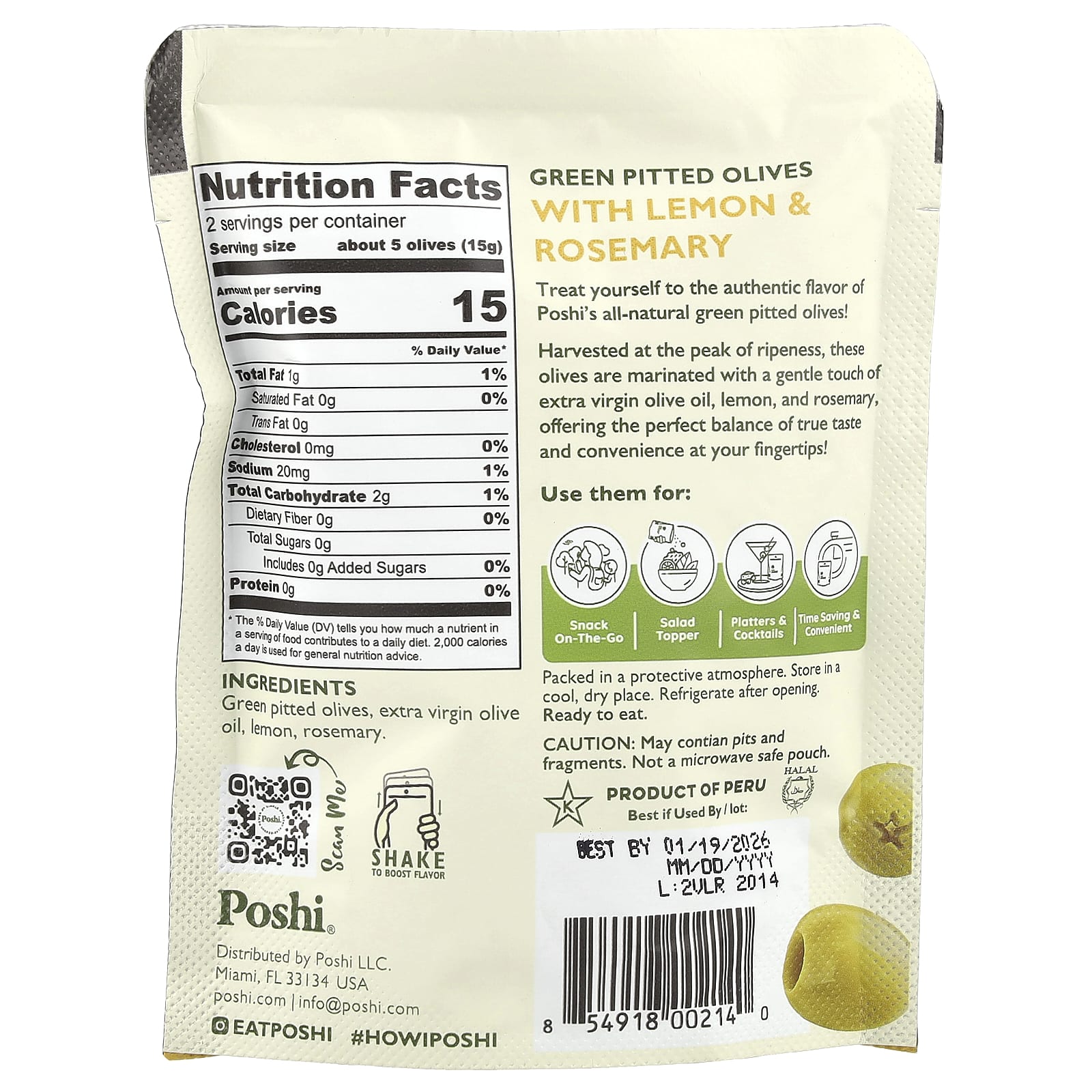 Poshi, Snacks, зеленые оливки премиального качества, лимон и розмарин, 30 г (1,1 унции)