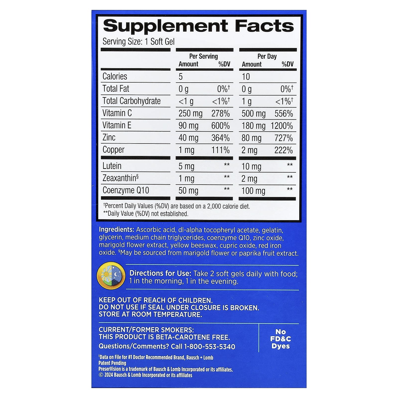 Сочетает в себе преимущества формулы AREDS 2 PreserVision® с коэнзимом Q10