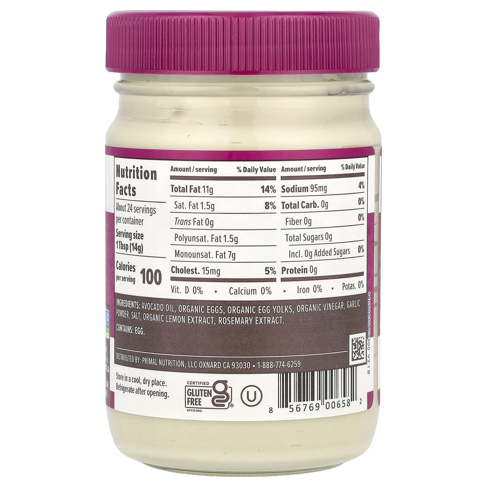 Primal Kitchen, Настоящий майонез с маслом авокадо, айоли с чесноком, 355 мл (12 жидк. Унций)