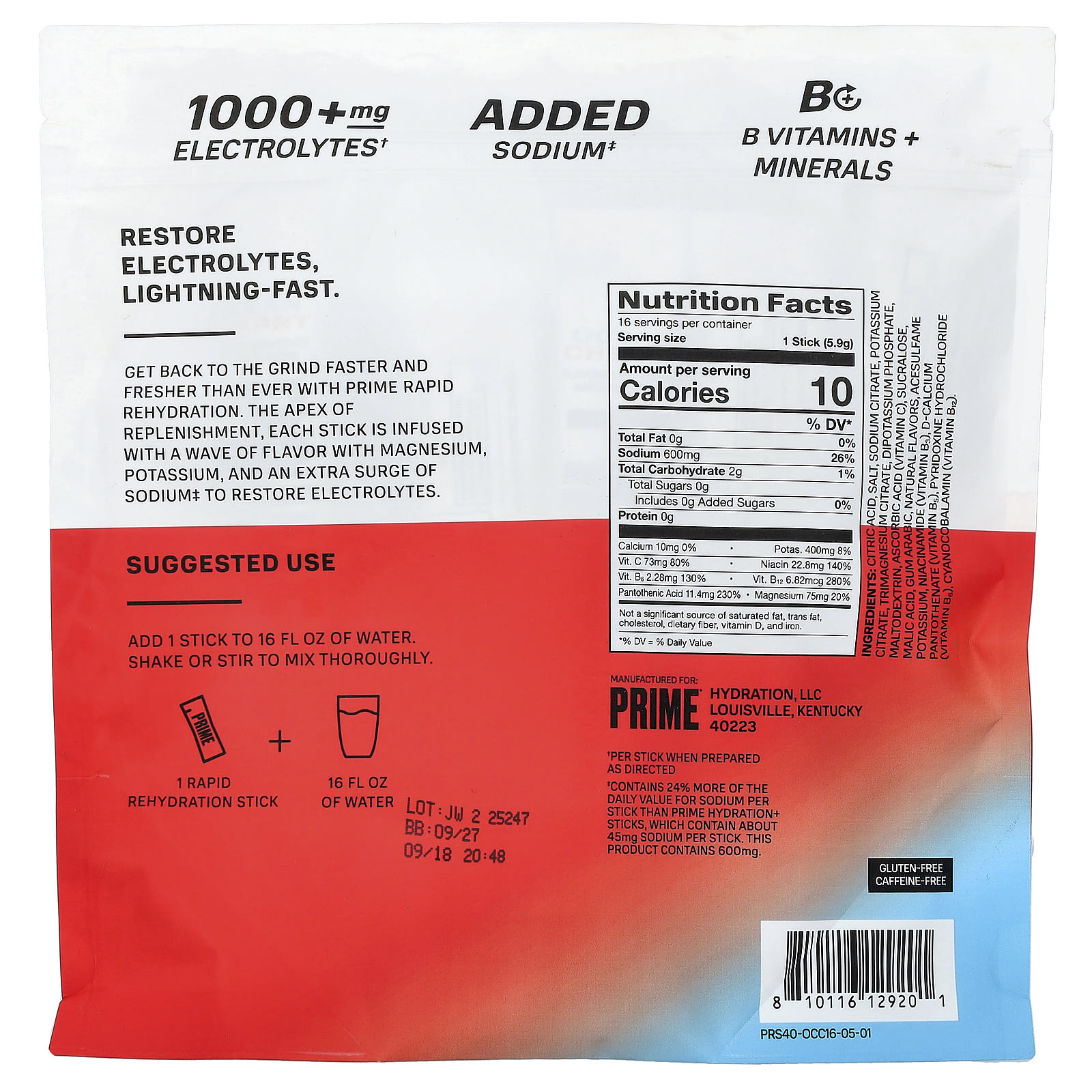‡ Содержит на 24% больше суточной нормы натрия в одном стике, чем стики Prime Hydration+, которые содержат около 45 мг натрия в 1 стике. Этот продукт содержит 600 мг