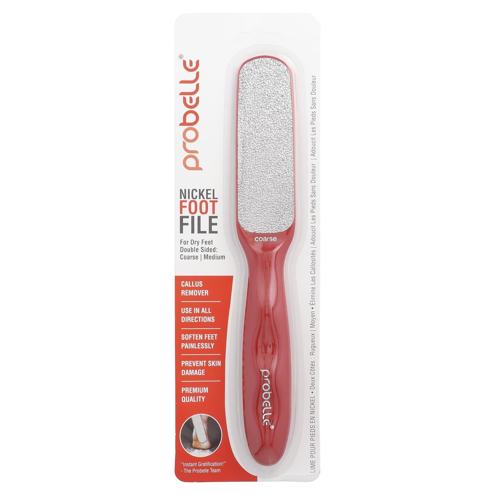 Никелевая пилка для ног Probelle - идеальный скраббер для ног. Предназначено для мгновенного превращения мозолей и натоптышей в пудру, не повреждая кожу. Никелевая поверхность обладает противомикробными свойствами, ее легко дезинфицировать. Легкая нескользящая ручка повторяет контур вашей руки.