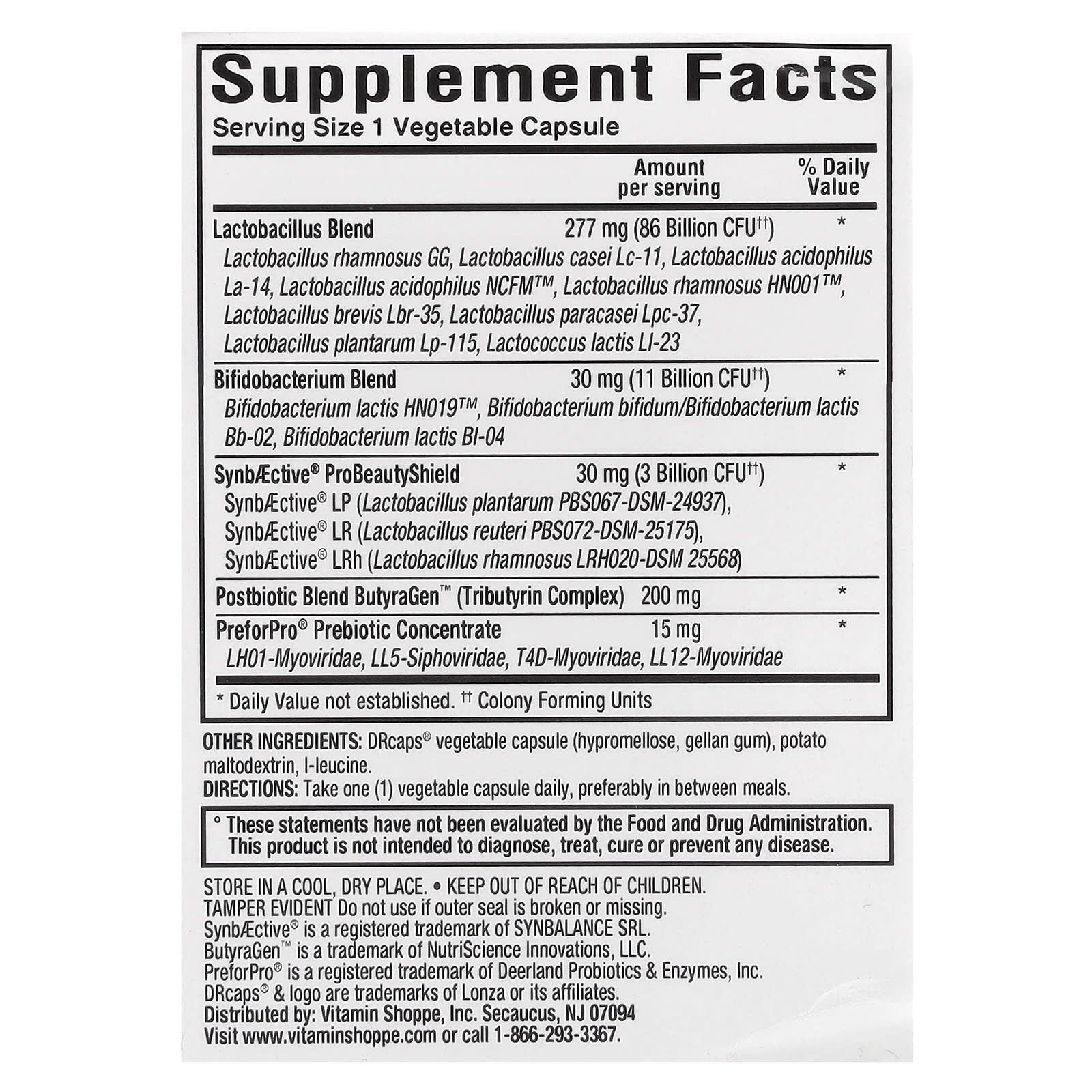| Смесь лактобактерий Лактобактерии рамнозус GG, лактобактерии казеи Lc-11, ацидофильные лактобактерии La-14, ацидофильные лактобактерии NCFM ™, лактобактерии рамнозус HN001 ™, лактобактерии бревис Lbr-35, лактобактерии лактобактерии лактобактерии лактобактерии Lpactocis-23, лактобактерии лактобактерии Lactobacillus paracasei Lpactobacillus lactobacillus paracasei | 277 мг (86 млрд КОЕ ††) | * |