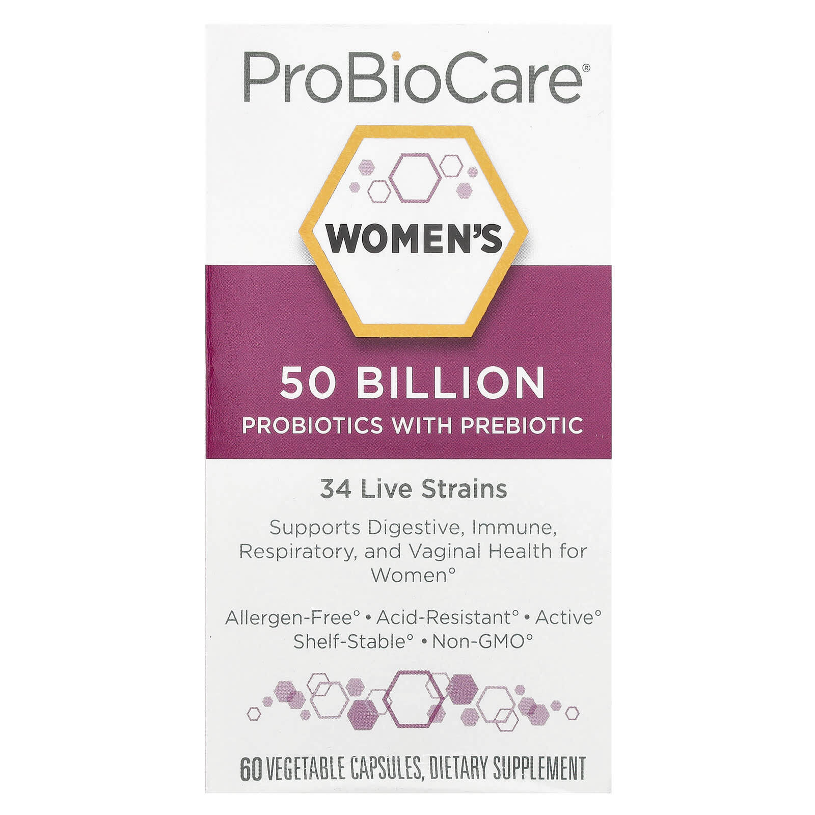 ProBioCare, Пробиотики для женщин с пребиотиками, 50 млрд, 60 растительных капсул