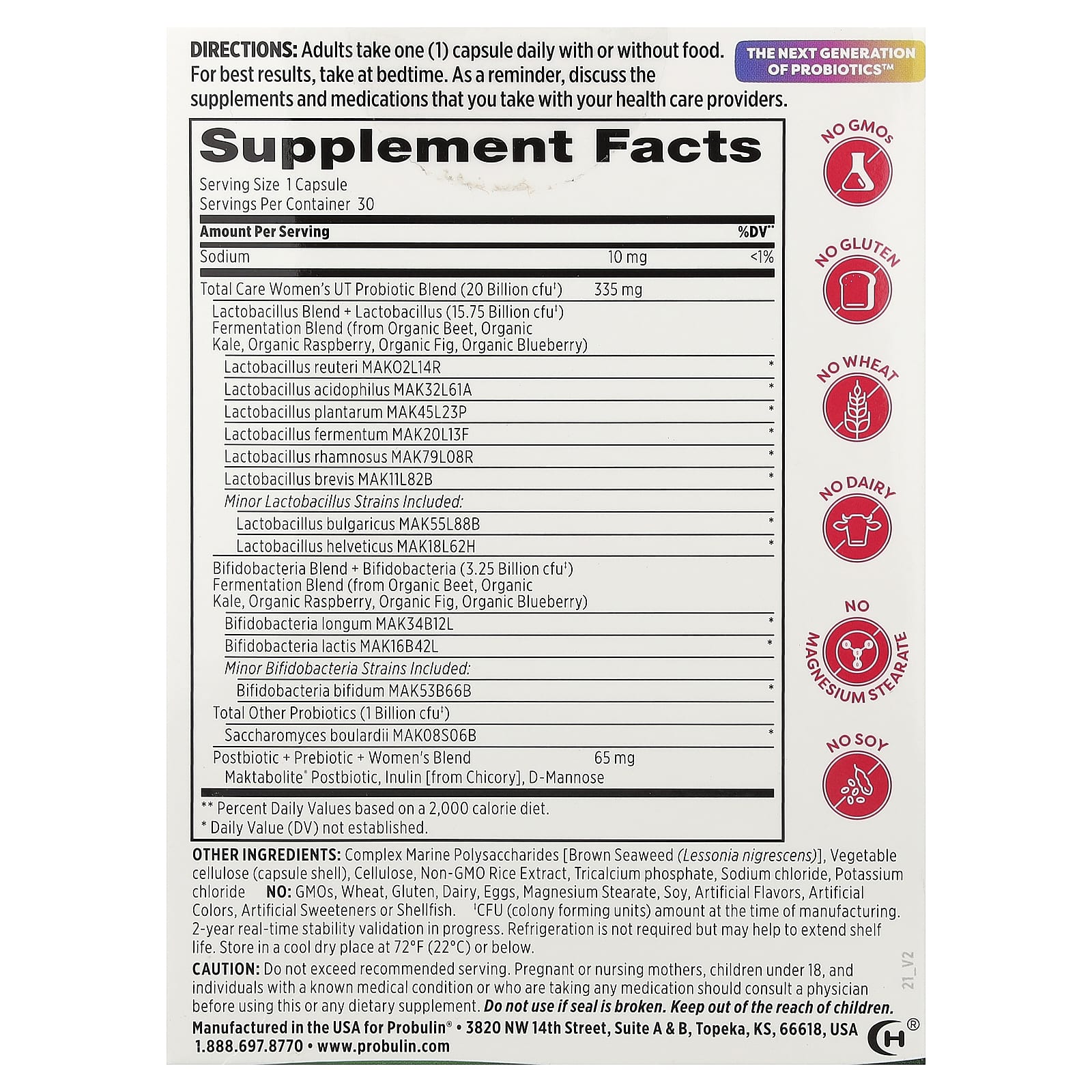 Пребиотик. Пробиотик UT от Probulin's® Total Care для женщин содержит наш пребиотик, который действует как пища для пробиотических бактерий.
