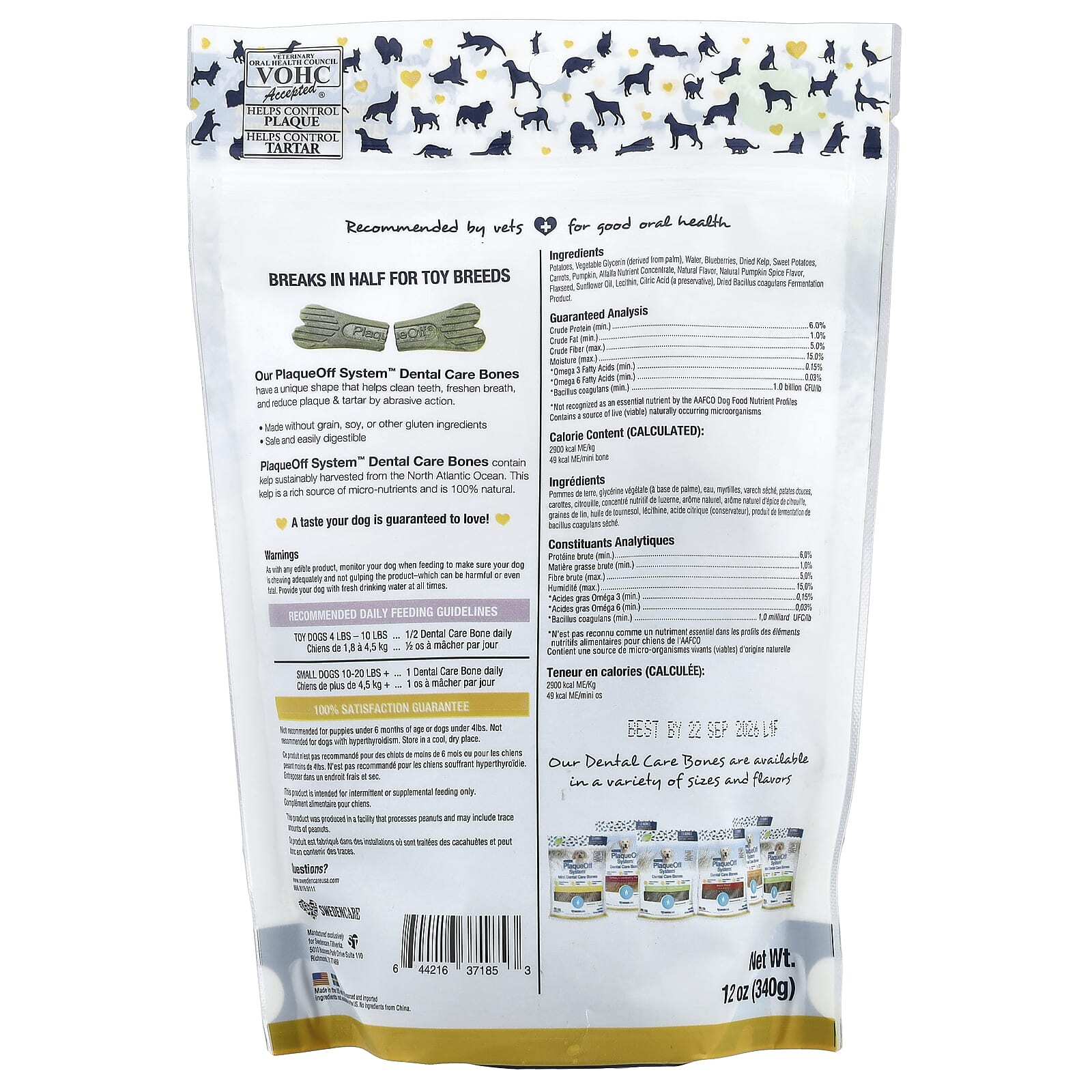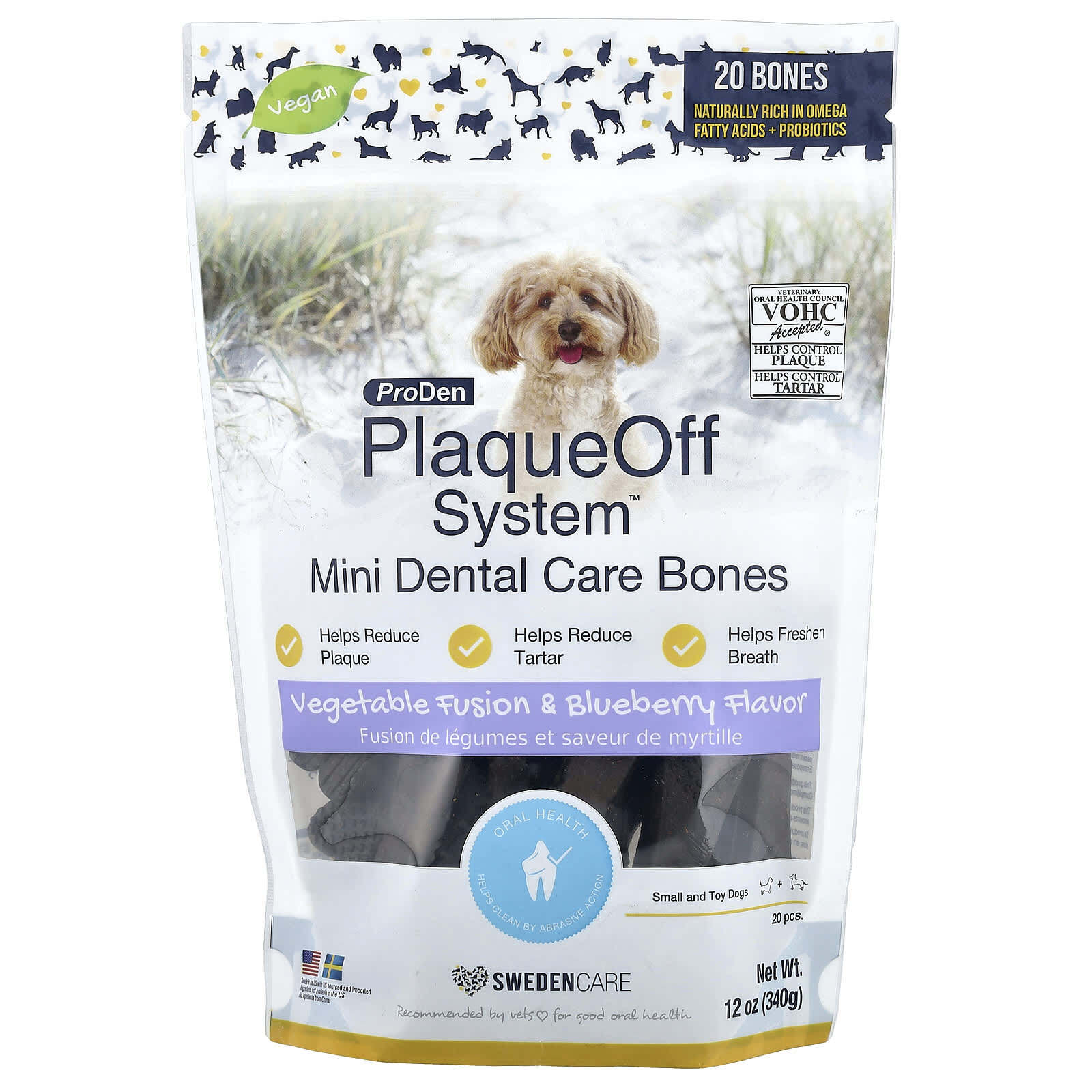ProDen, PlaqueOff System, стоматологическая мини-косметика для ухода за зубами, для собак мелких и игрушечных пород, смесь овощей и голубики, 20 костей, 340 г (12 унций)