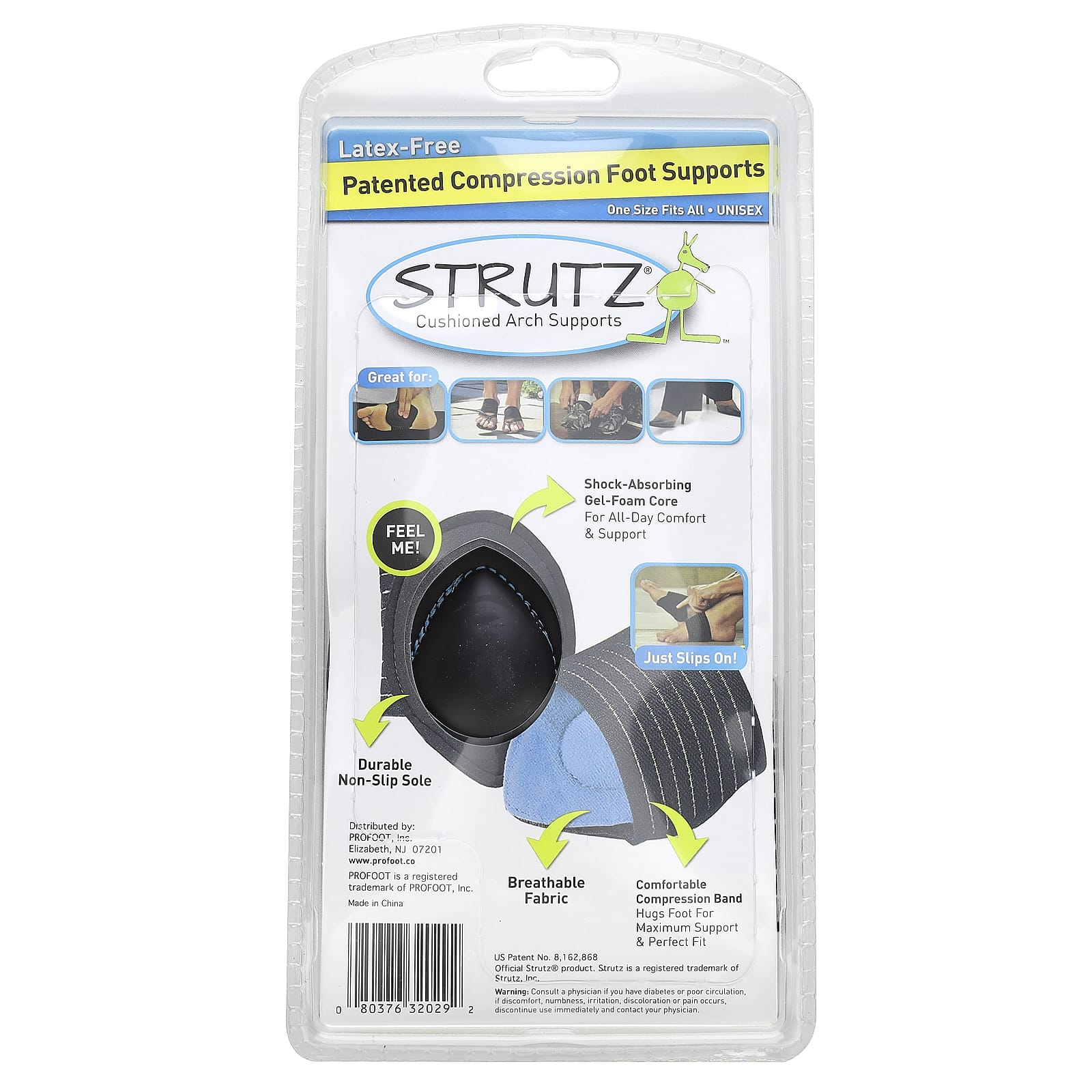 Подологи рекомендуют людям, страдающим подошвенным фасциитом, не ходить босиком. К счастью, наши амортизирующие супинаторы Strutz обеспечивают комфорт и поддержку даже при ходьбе босиком! Наш амортизирующий внутренний слой из вспененного геля и дышащая компрессионная лента обеспечивают постоянную поддержку даже без обуви! Можно наносить босиком, с носками или в туфлях.