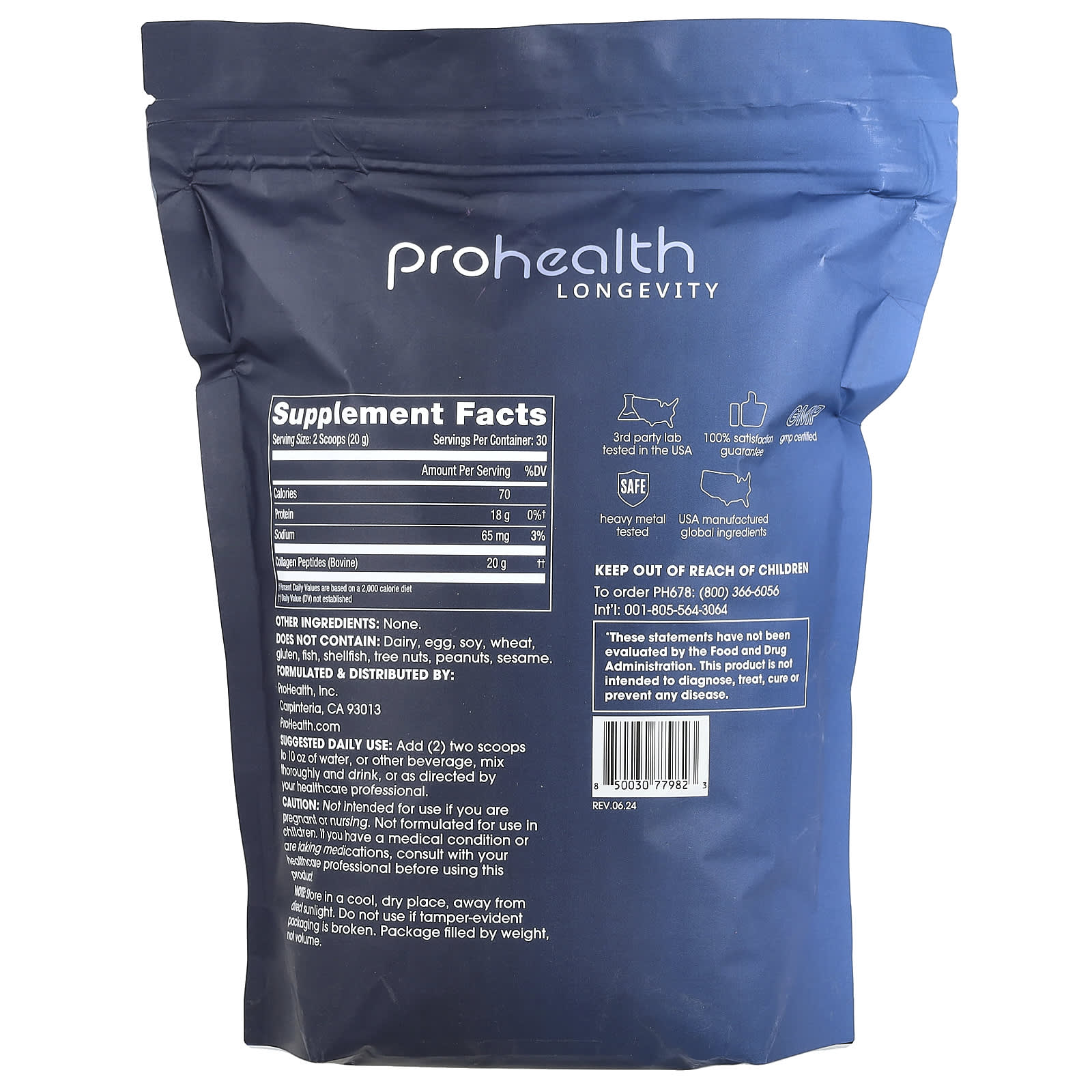 Чистые пептиды коллагена ProHealth получены из коровьего молока и содержат хорошо усваиваемую форму коллагена. Коллаген бычьего происхождения имеет сходный аминокислотный профиль с человеческим коллагеном, что делает его оптимальным выбором для поддержки обновления коллагена.