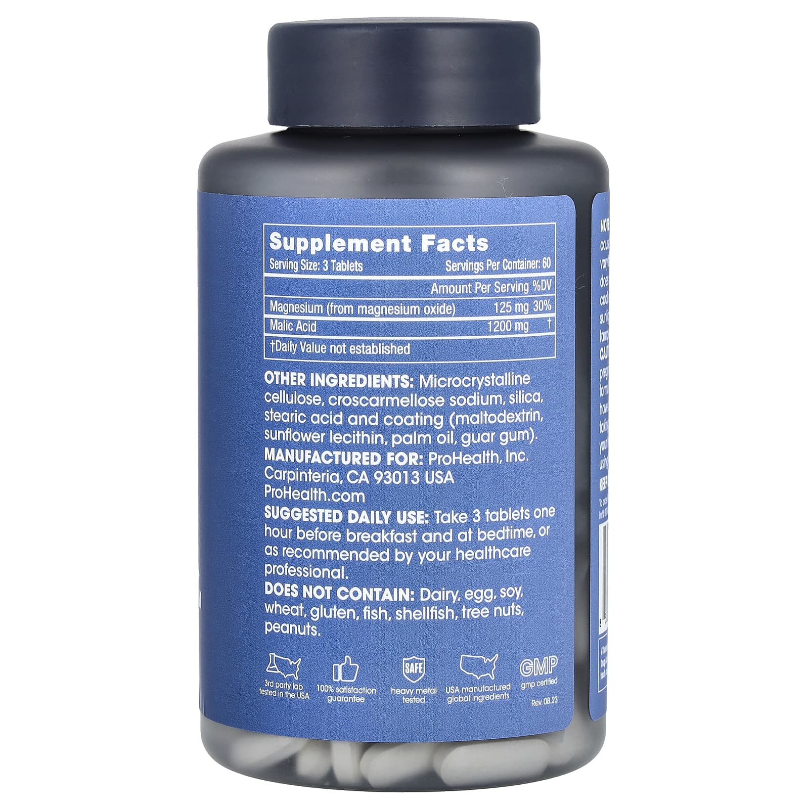 Поддерживает расслабление и комфорт мышц. Магний помогает расслабить мышцы, а яблочная кислота облегчает дискомфорт, связанный с гипоксией мышц и тканей. Люди с мышечно-скелетной болью, как правило, имеют пониженный уровень кислорода в мышцах, также известный как мышечная гипоксия. Исследования показали, что у людей с мышечно-скелетной болью, принимавших 300–600 мг магния и 1200–2400 мг яблочной кислоты в течение 4–8 недель, симптомы, связанные с мышечной болью, значительно уменьшались всего за 48 часов.
