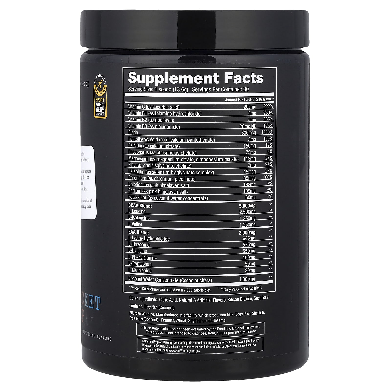| Калий (в виде концентрата кокосовой воды) | 60 мг | 1% |