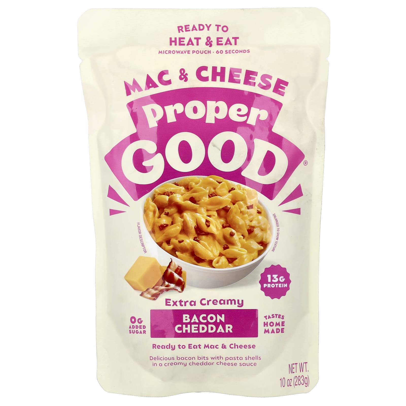 Наши макароны с сыром и беконом готовы к употреблению... просто разогрейте и съешьте, чтобы получить мясные, сочные, сырные оболочки для пасты!